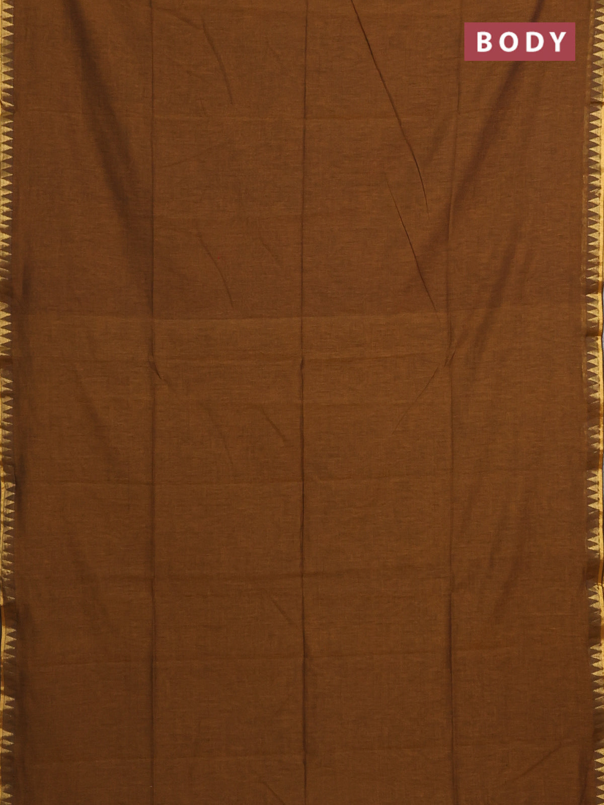 Bengal soft cotton saree dark msutard with plain body and temple design zari woven border