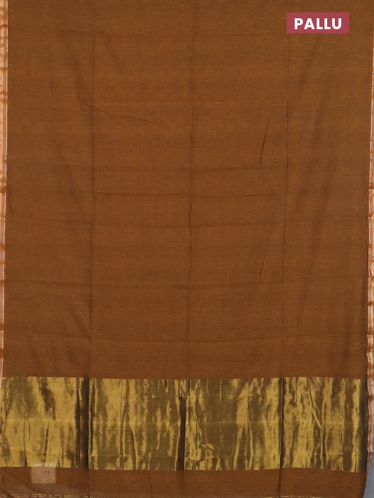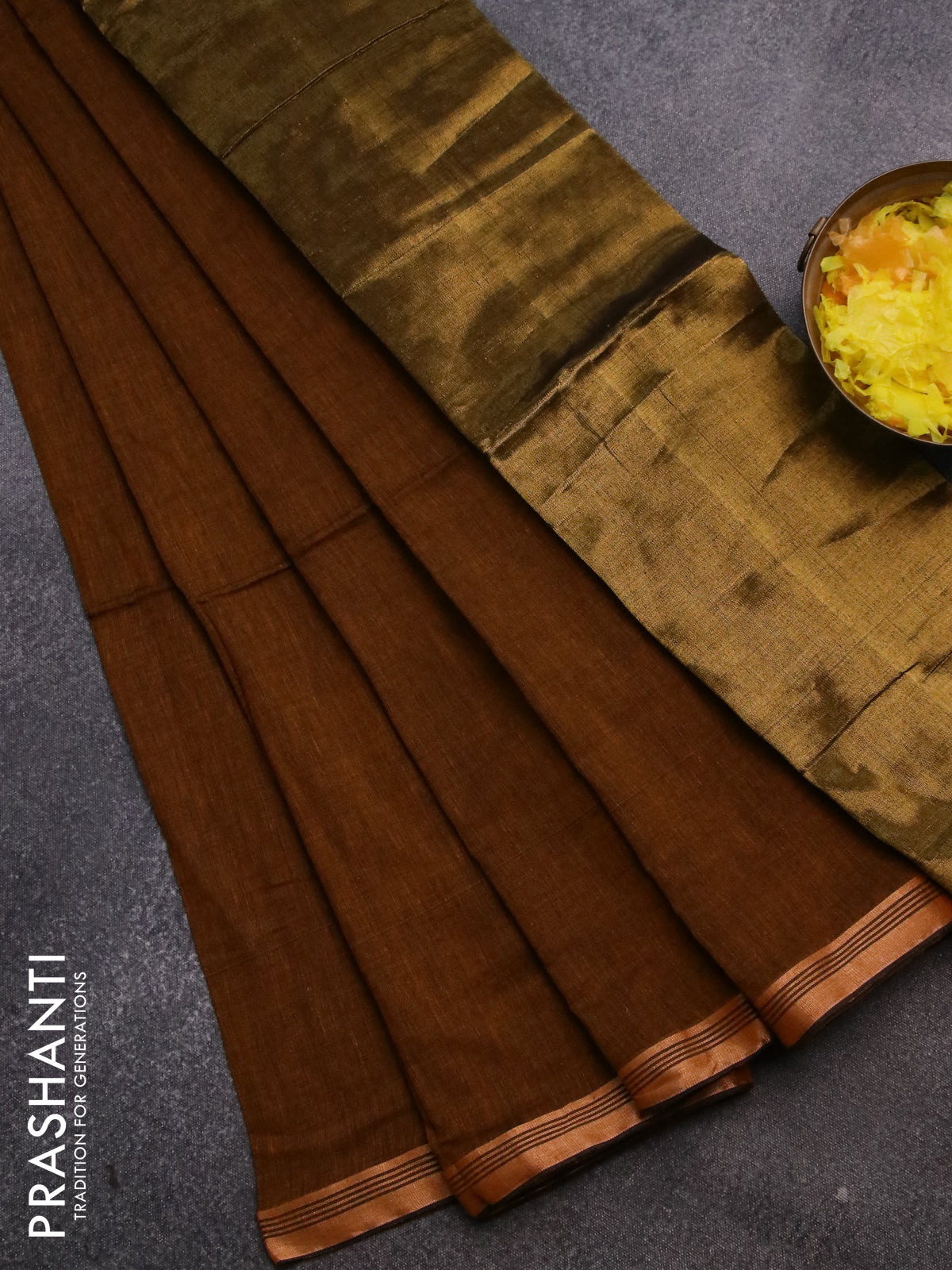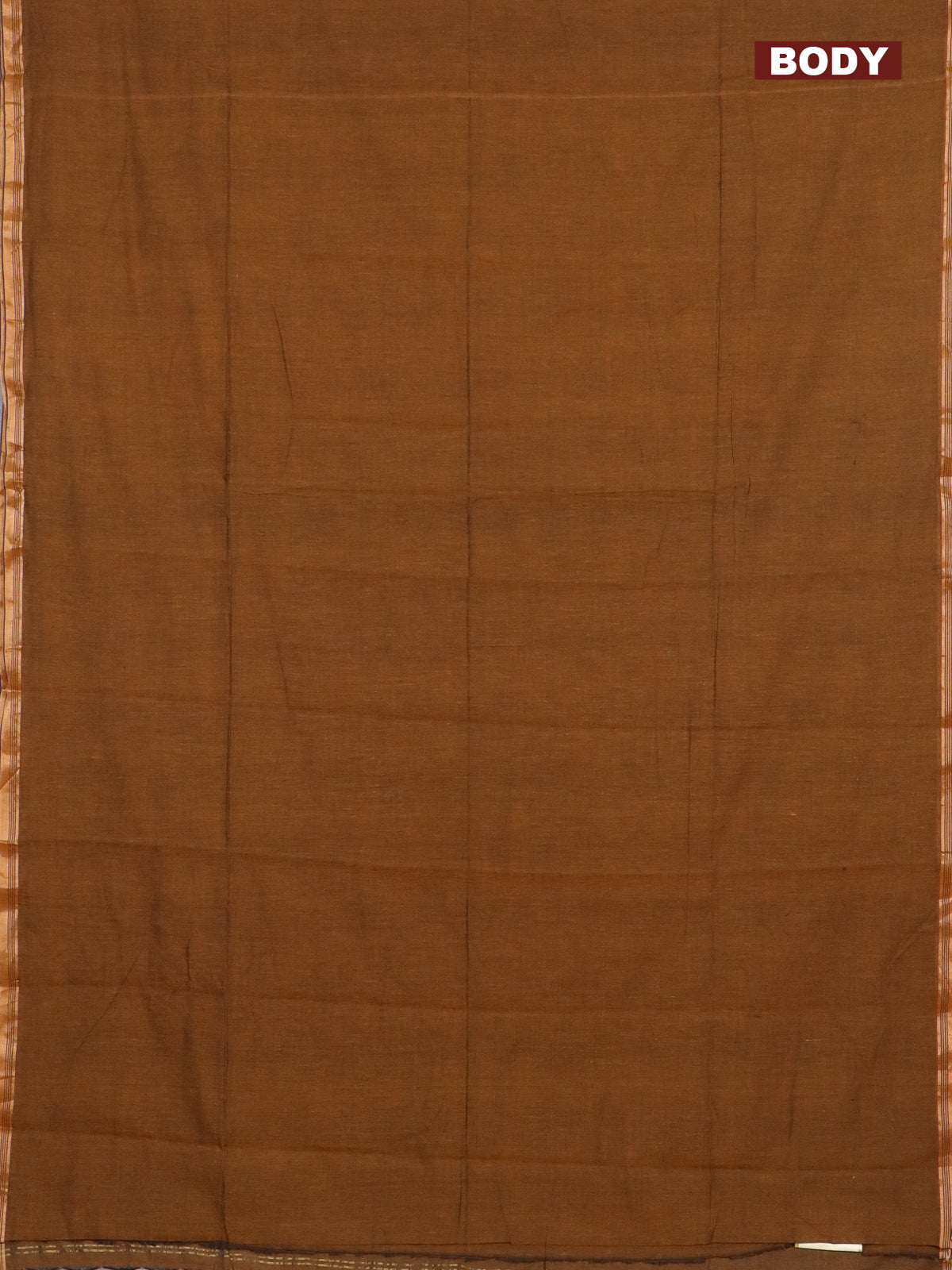 Bengal soft cotton saree dark mustard with plain body and zari woven border