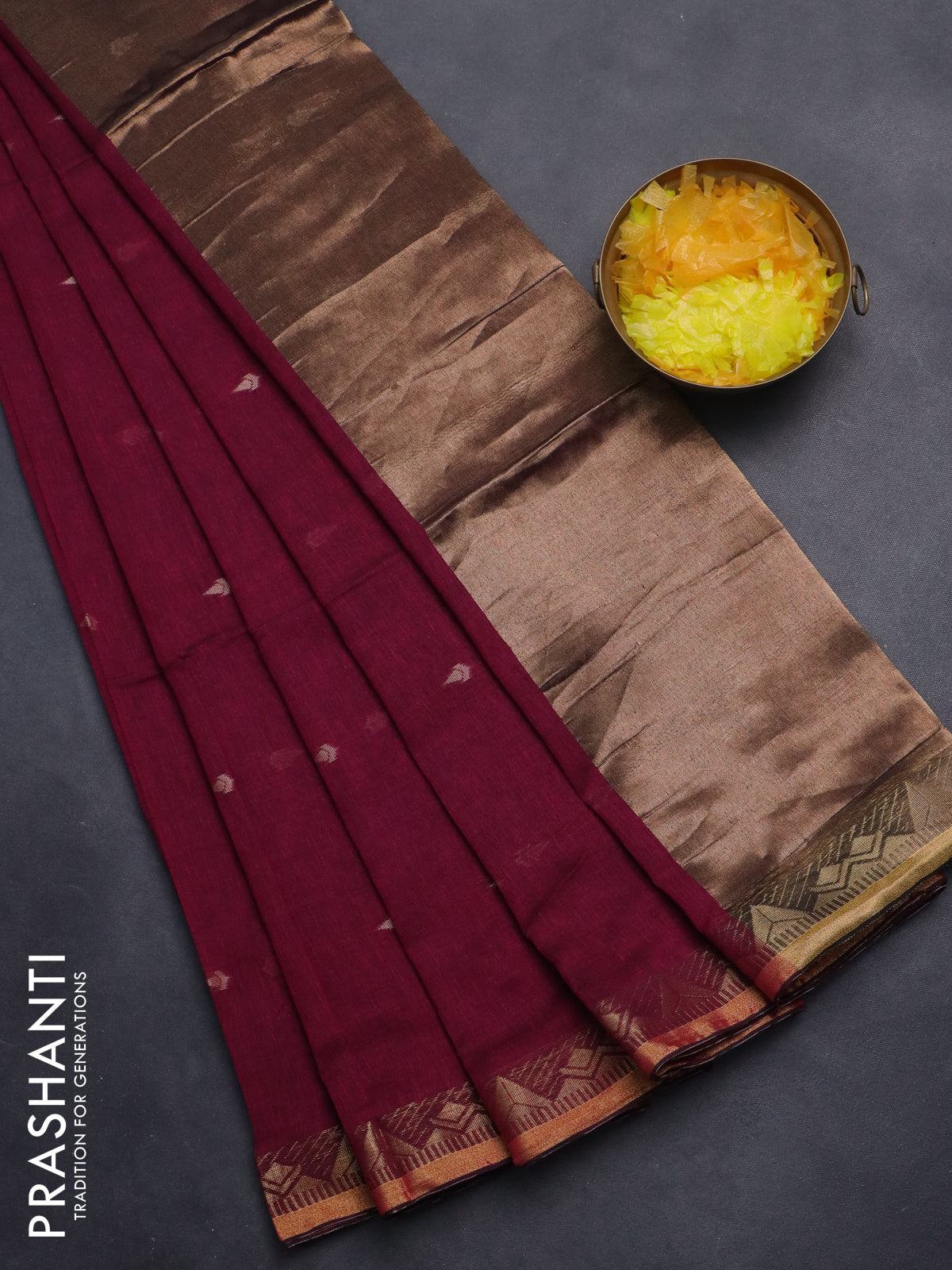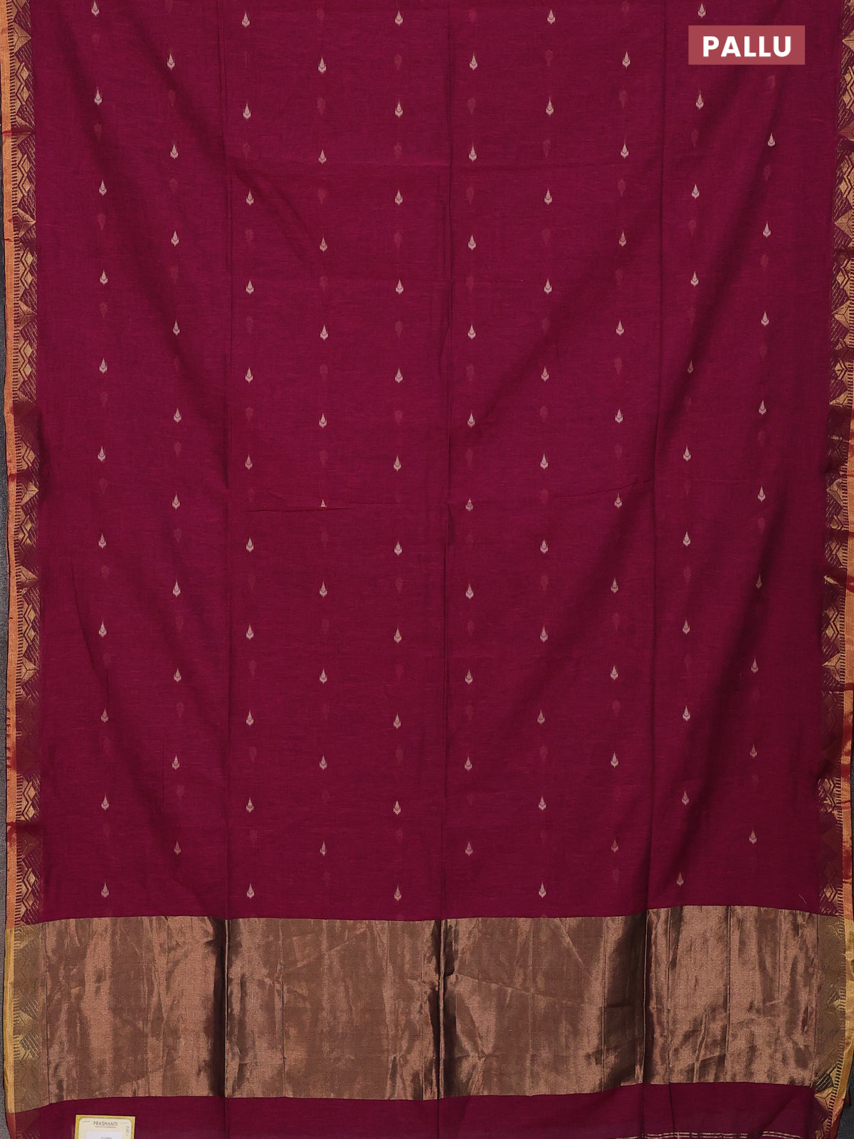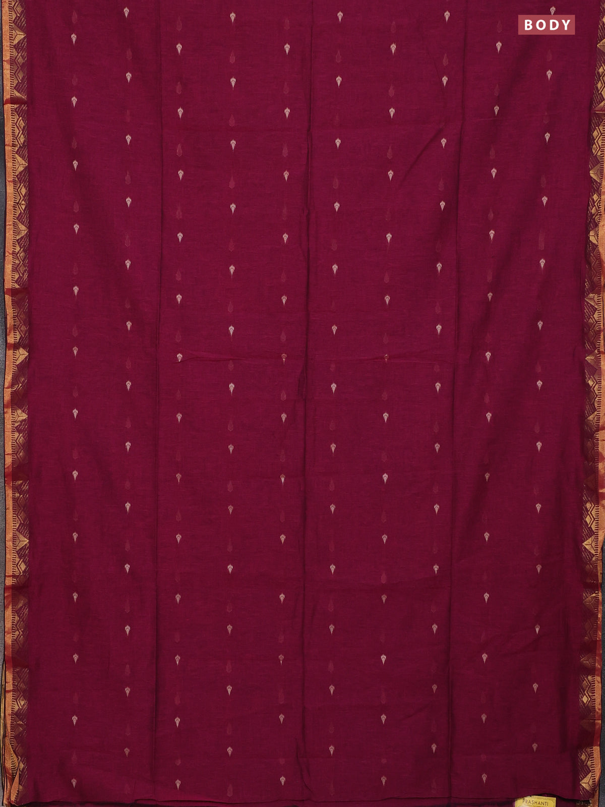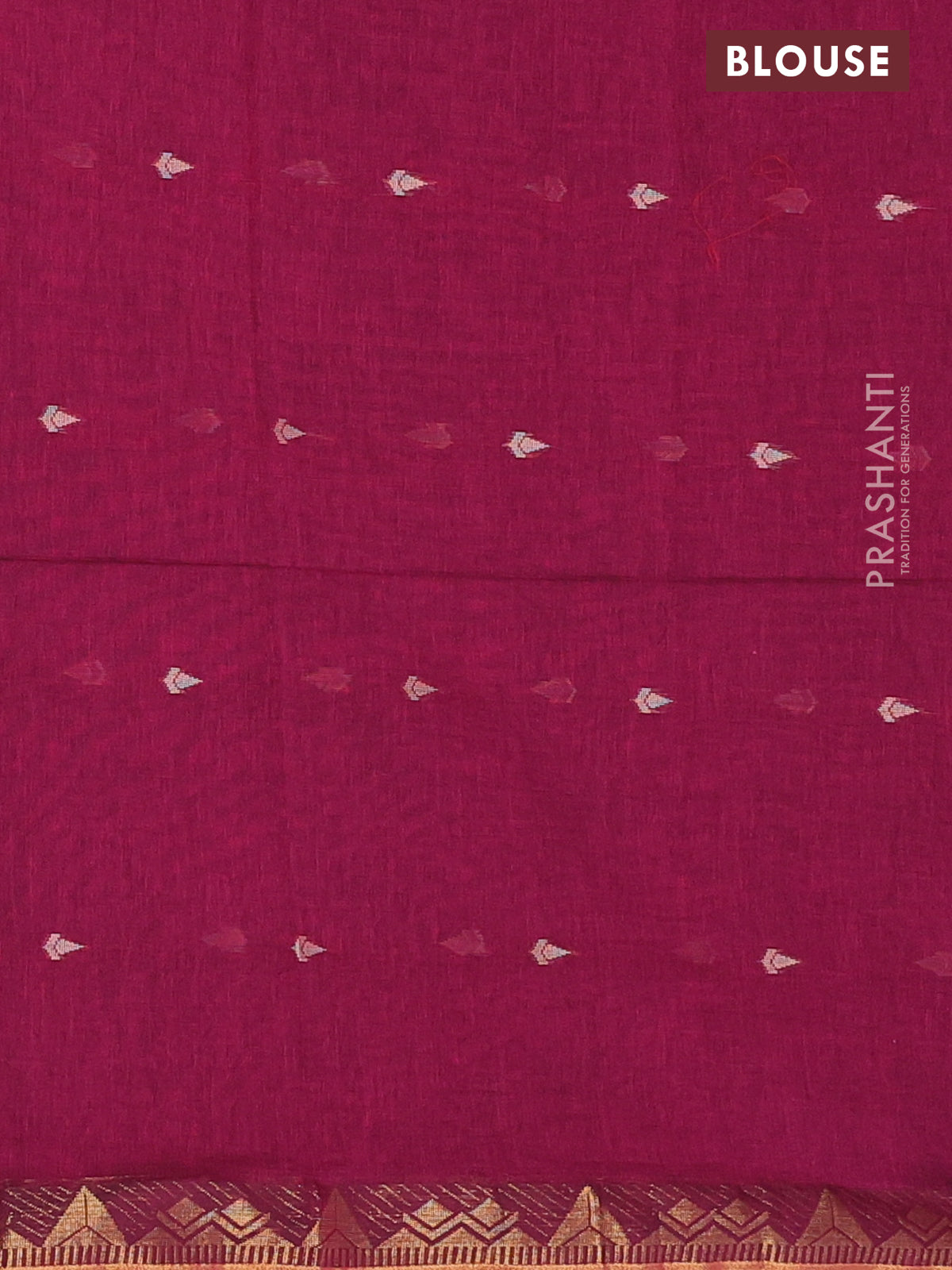 Bengal soft cotton saree magenta pink with thread woven buttas and zari woven border