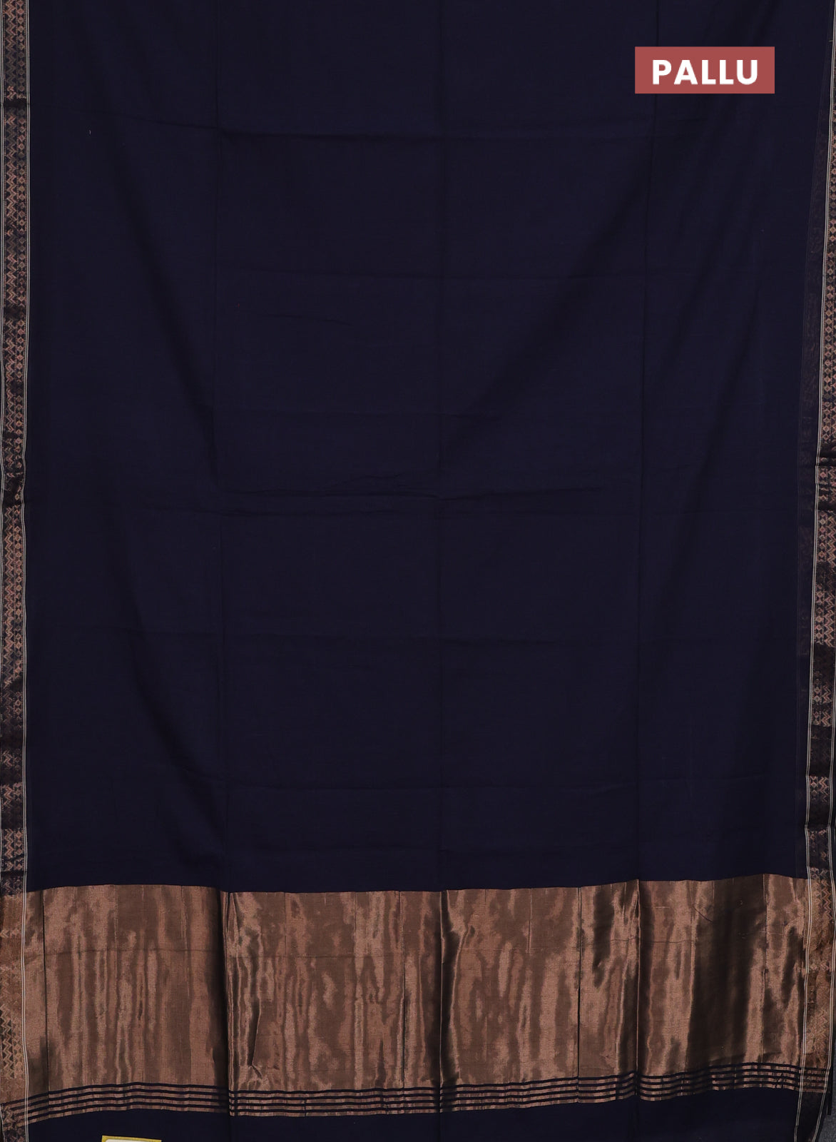 Bengal soft cotton saree navy blue and red with plain body and zari woven border