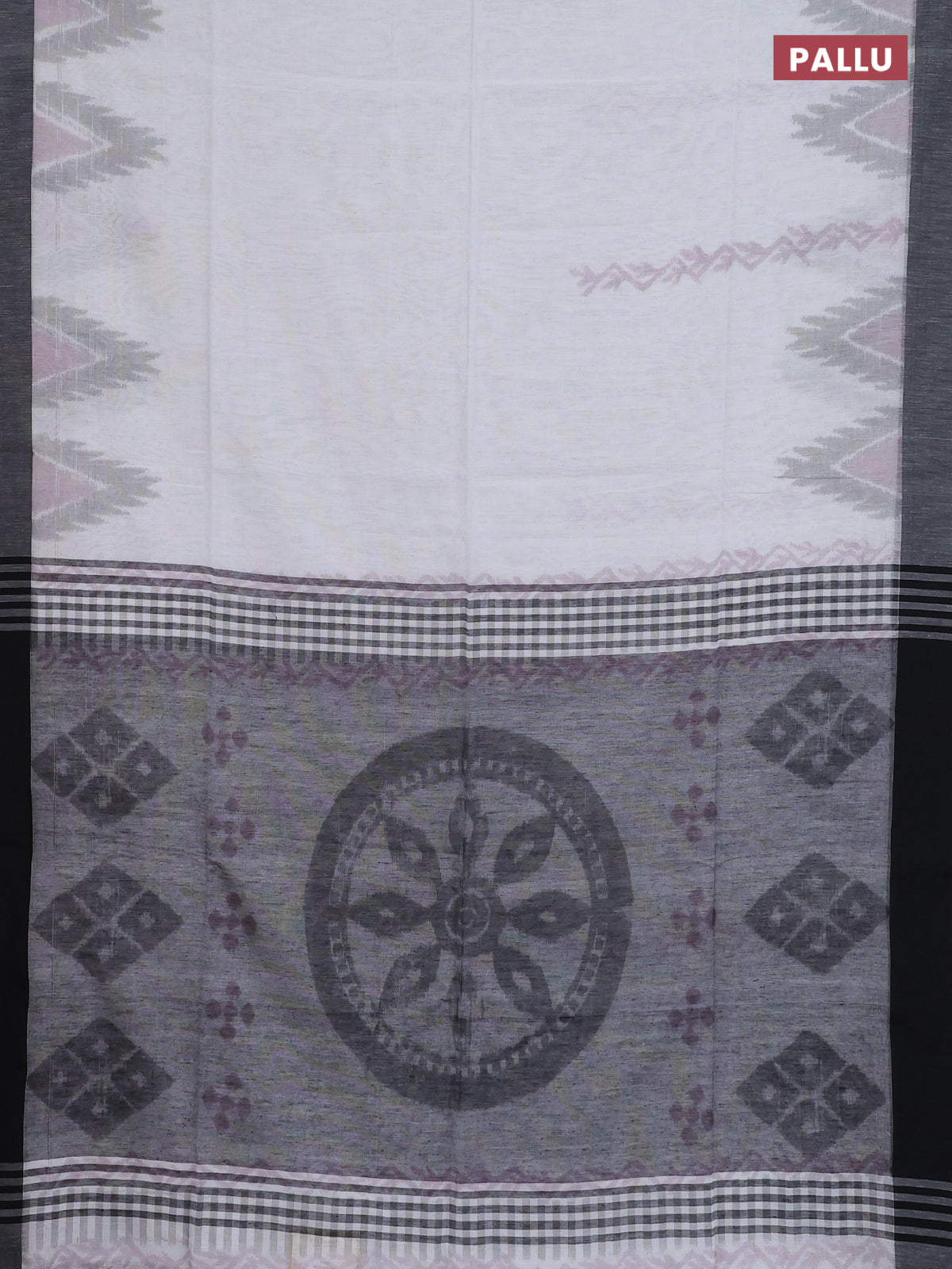 Bengal soft cotton saree off white and black with allover butta weaves and simple border