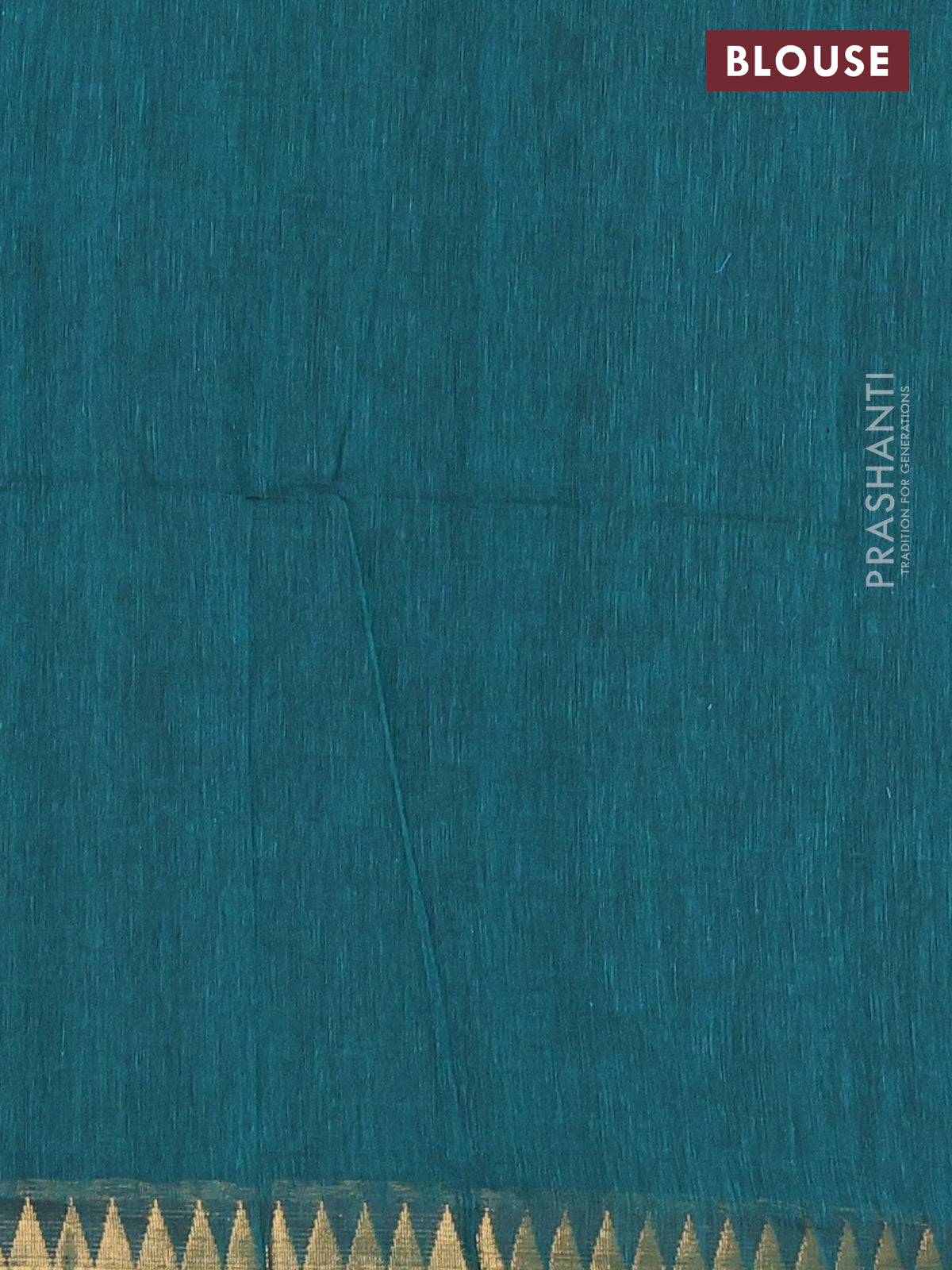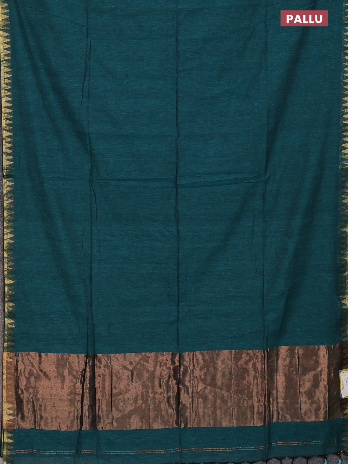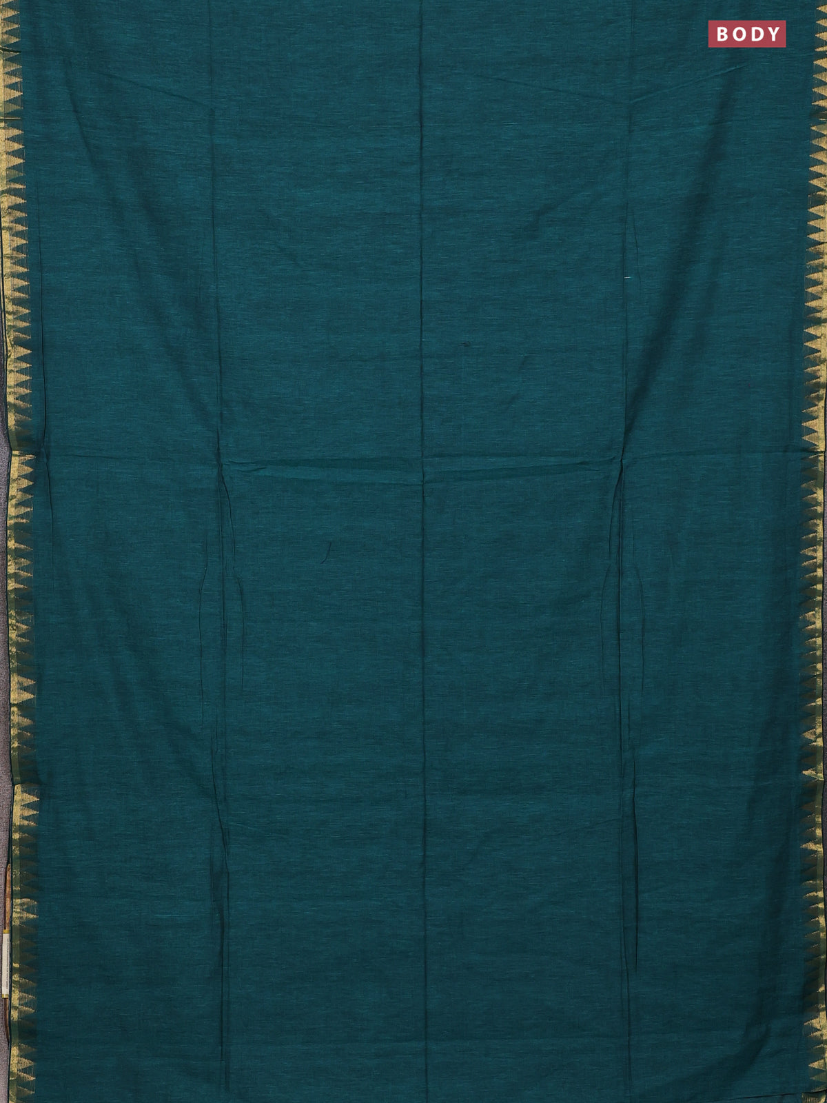 Bengal soft cotton saree peacock green with plain body and temple design zari woven border