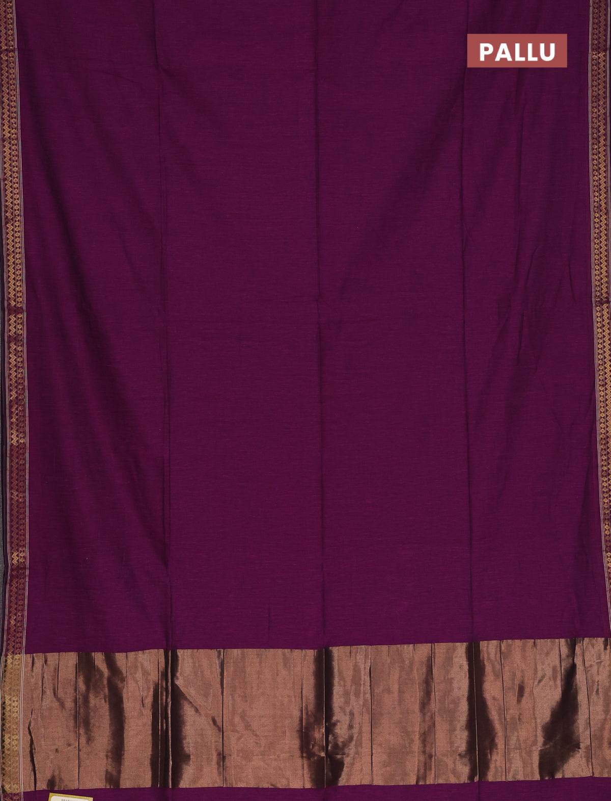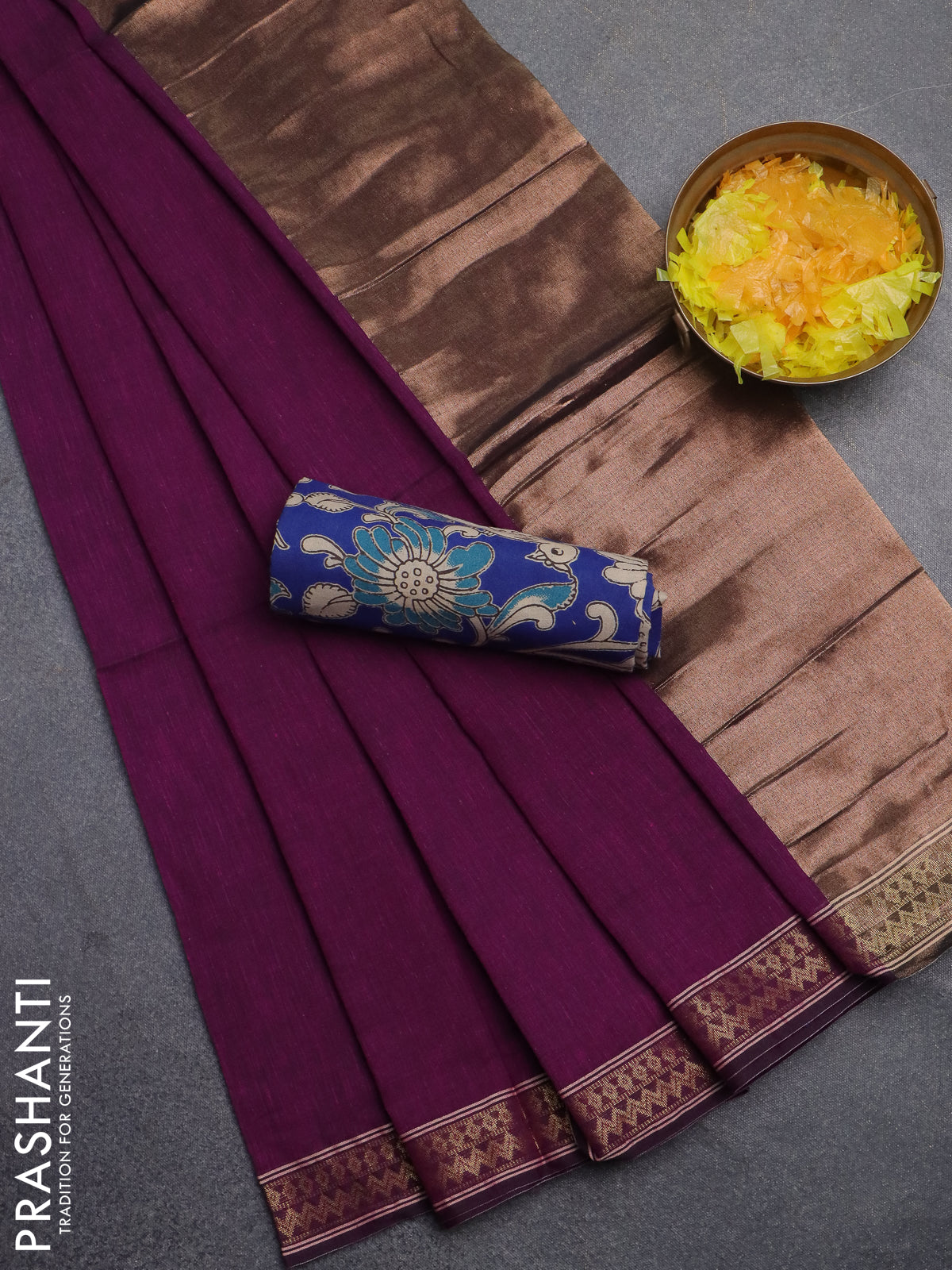 Bengal soft cotton saree purple and blue with plain body and zari woven border