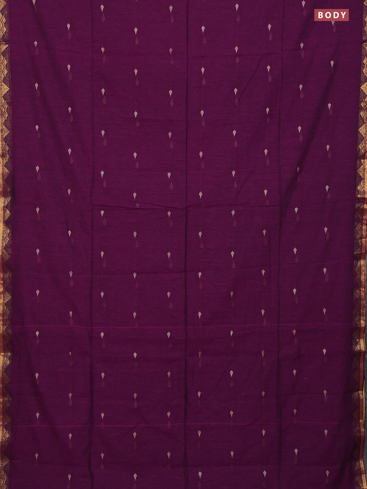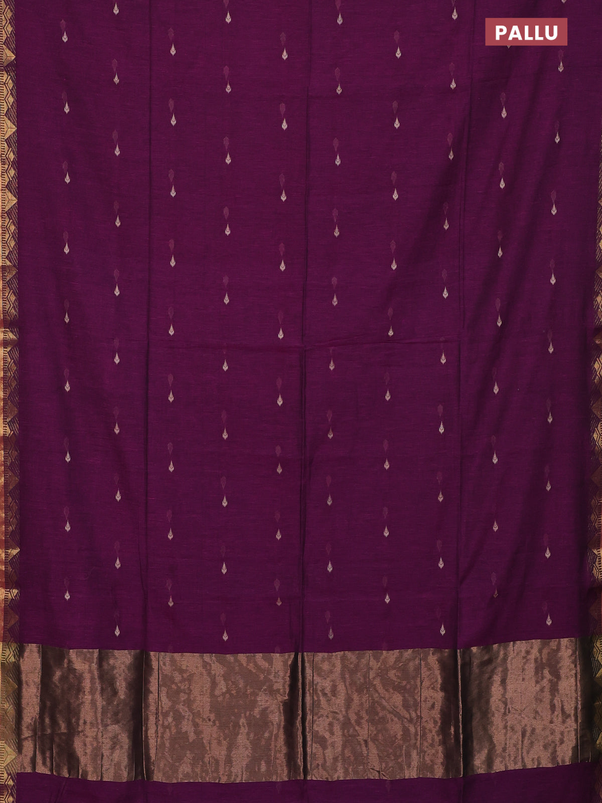 Bengal soft cotton saree purple with thread woven buttas and zari woven border