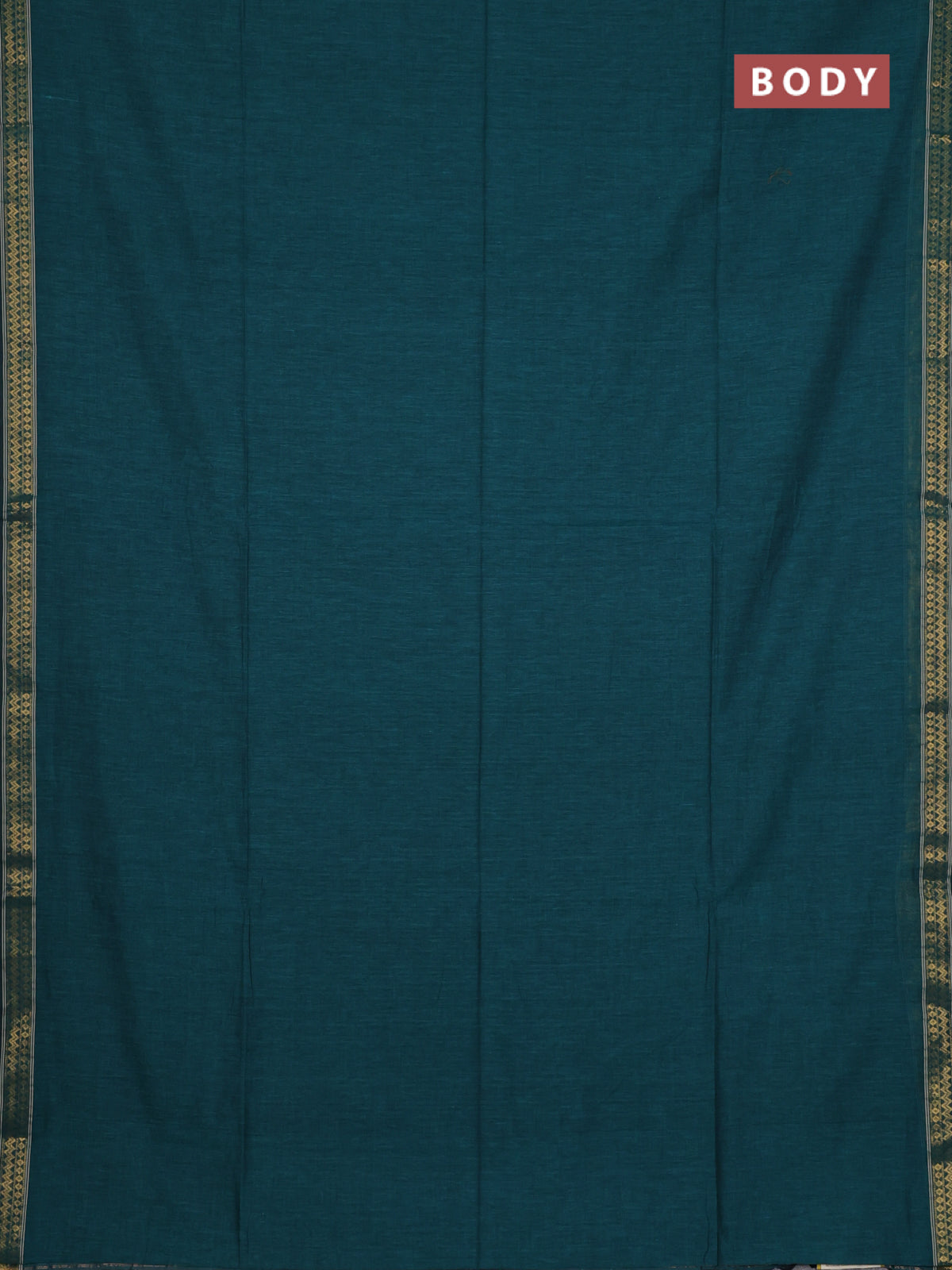 Bengal soft cotton saree teal green and sap green with plain body and zari woven border