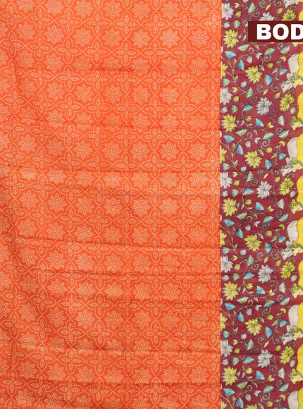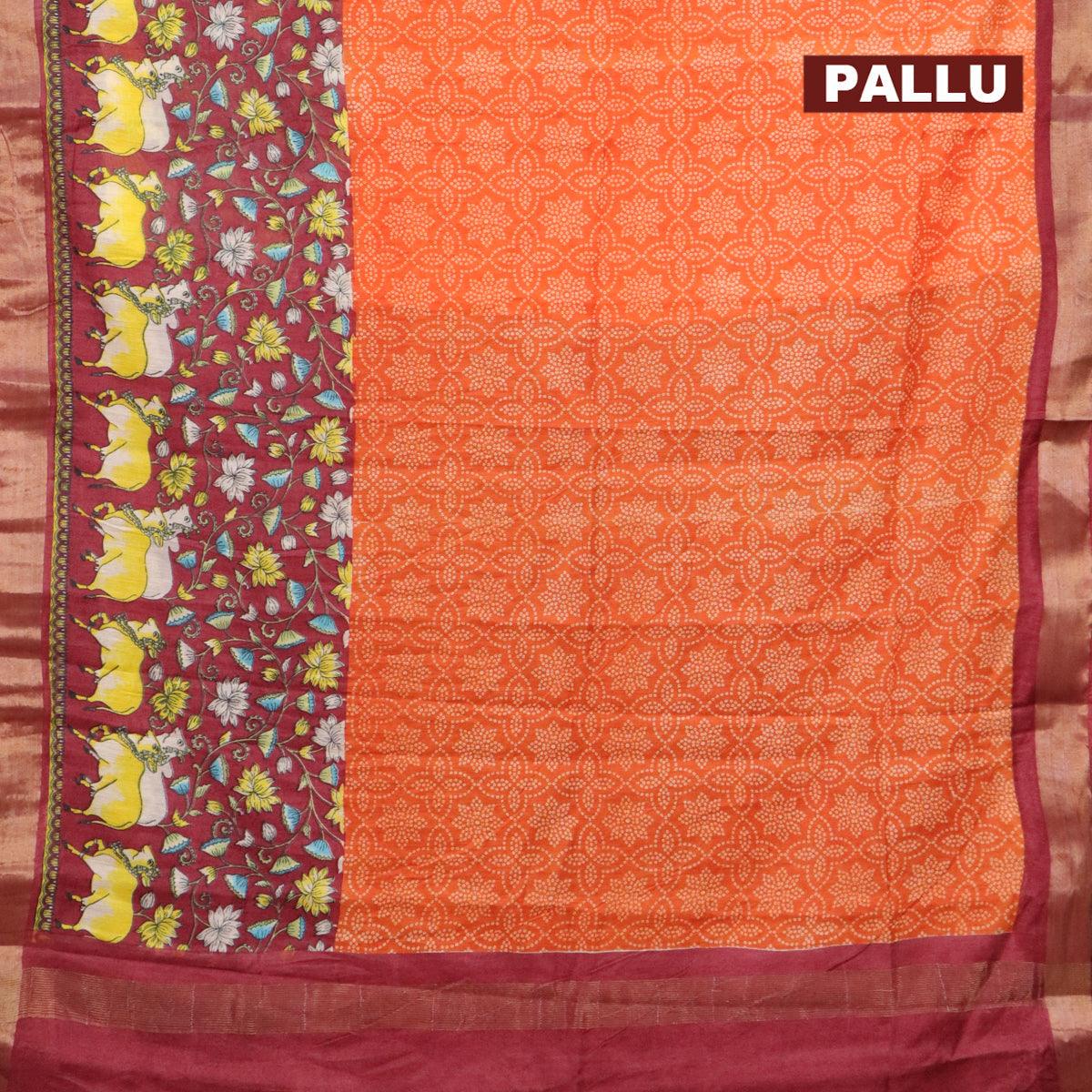 Bhagalpuri saree orange and maroon with allover bandhani prints and long pichwai printed zari woven border