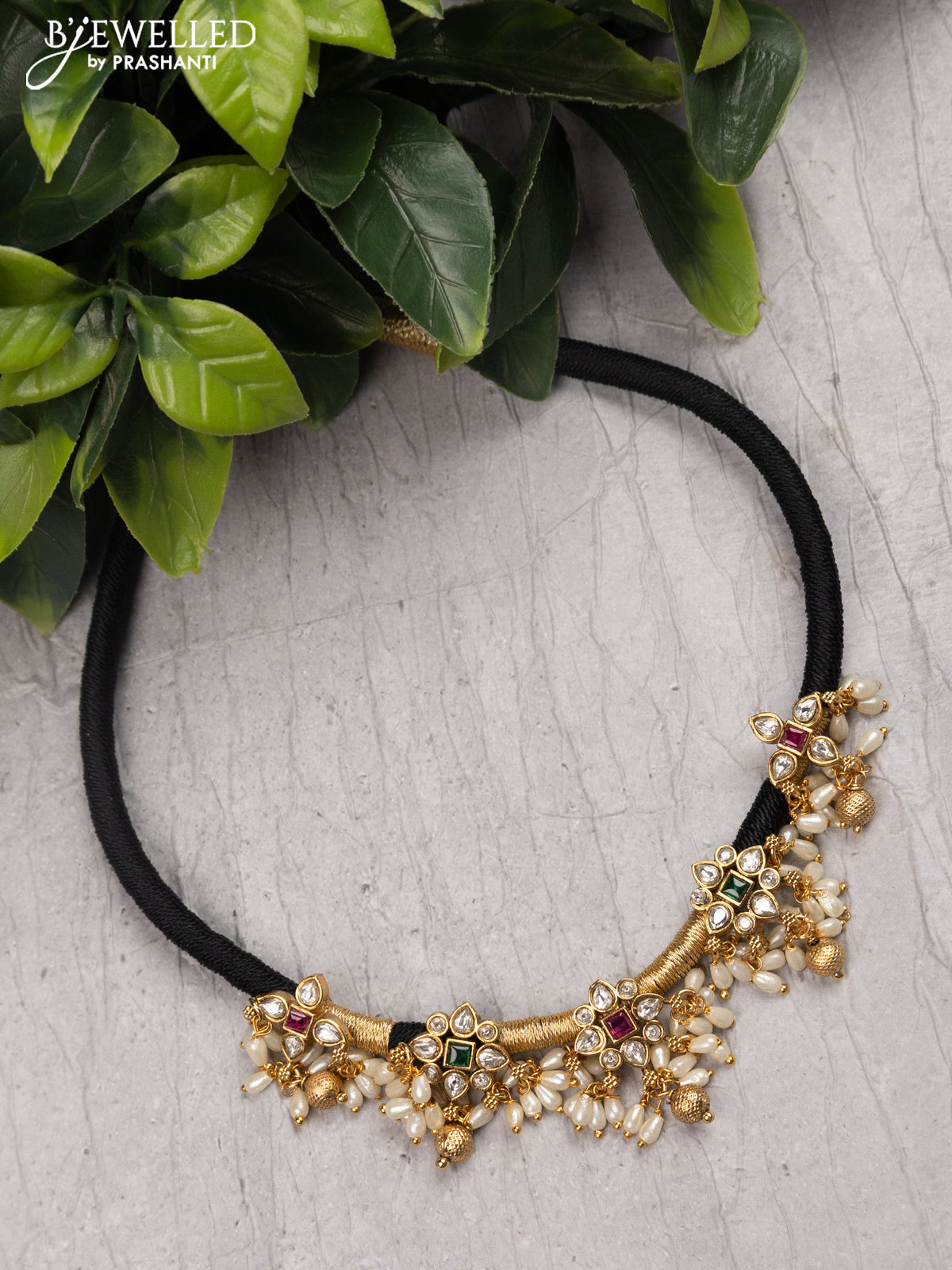 Black thread necklace with kemp & cz stone and pearl hangings without earrings