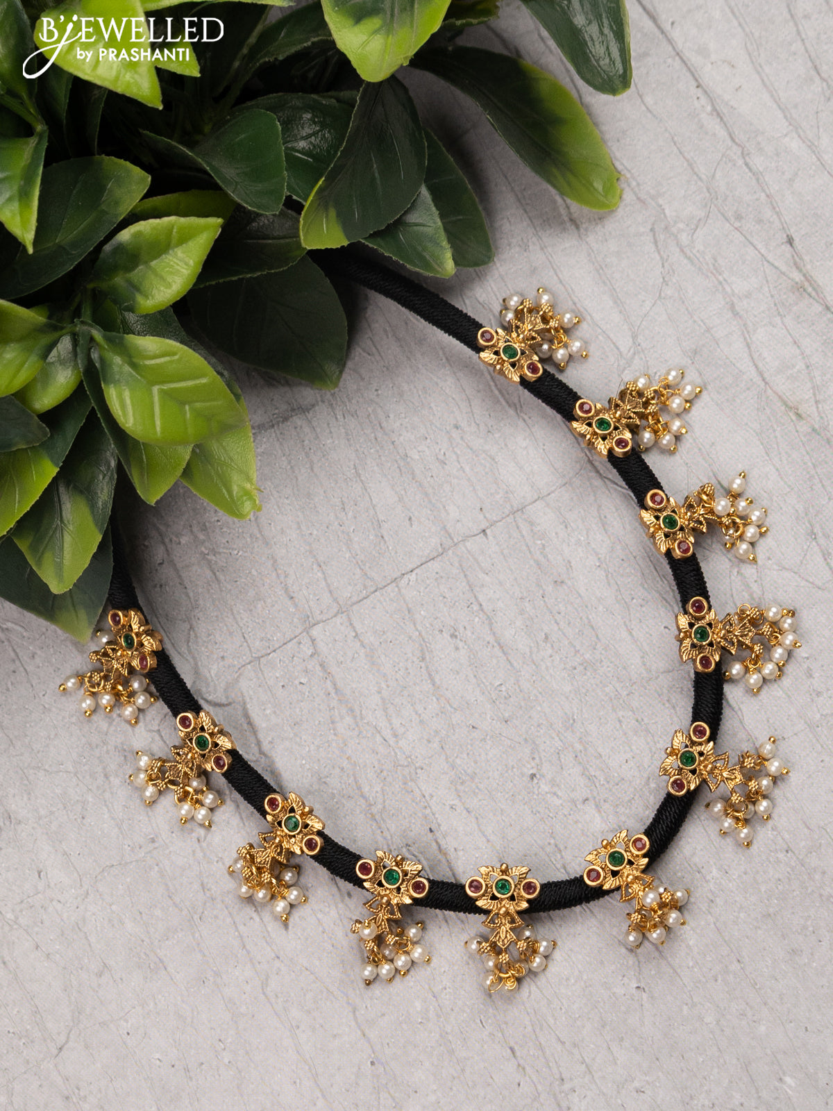 Black thread necklace with kemp stone and pearl hangings without earrings