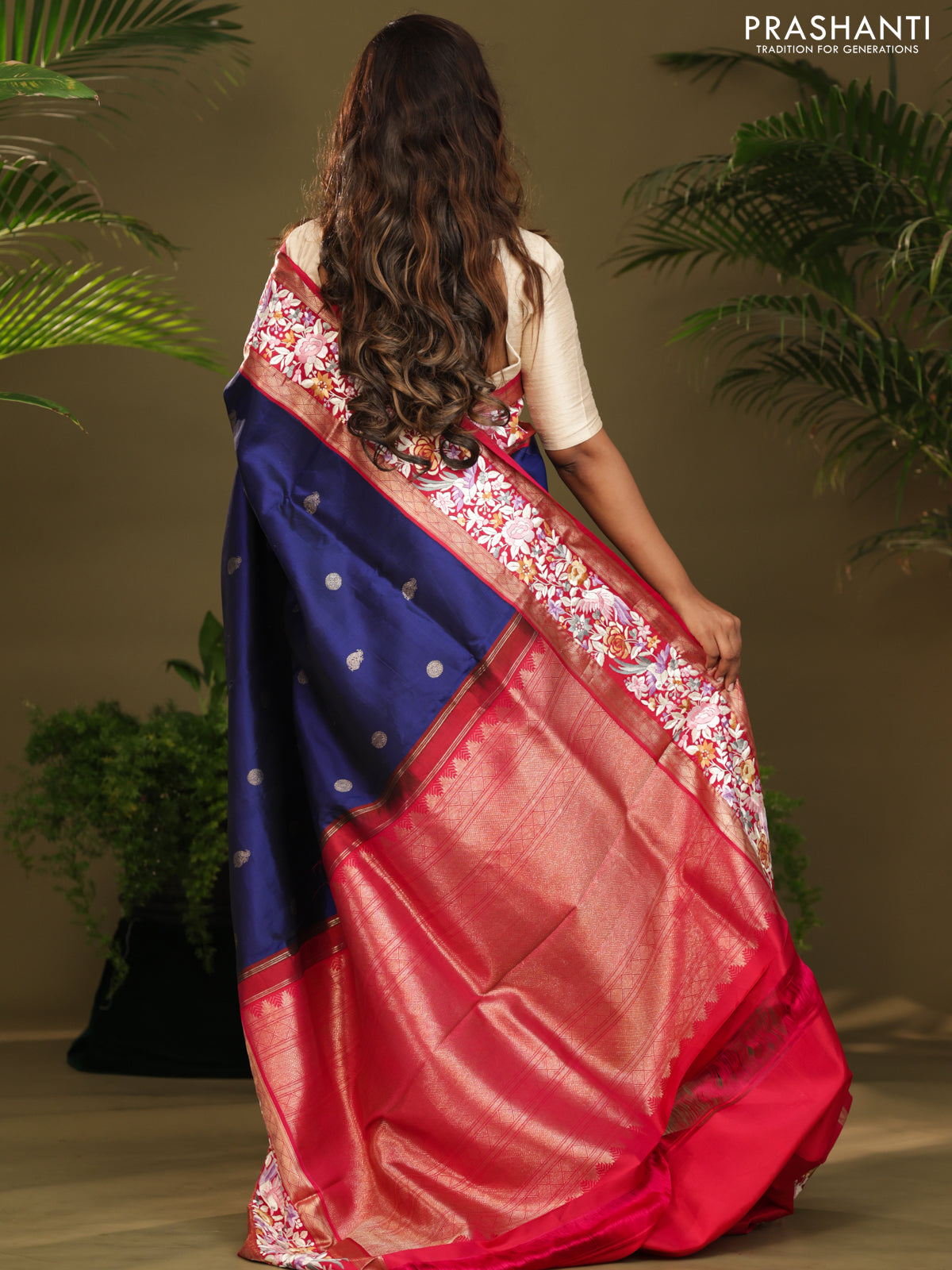 Blue & Pink Kanchipuram Silk Saree Parsi Work Embroidery border