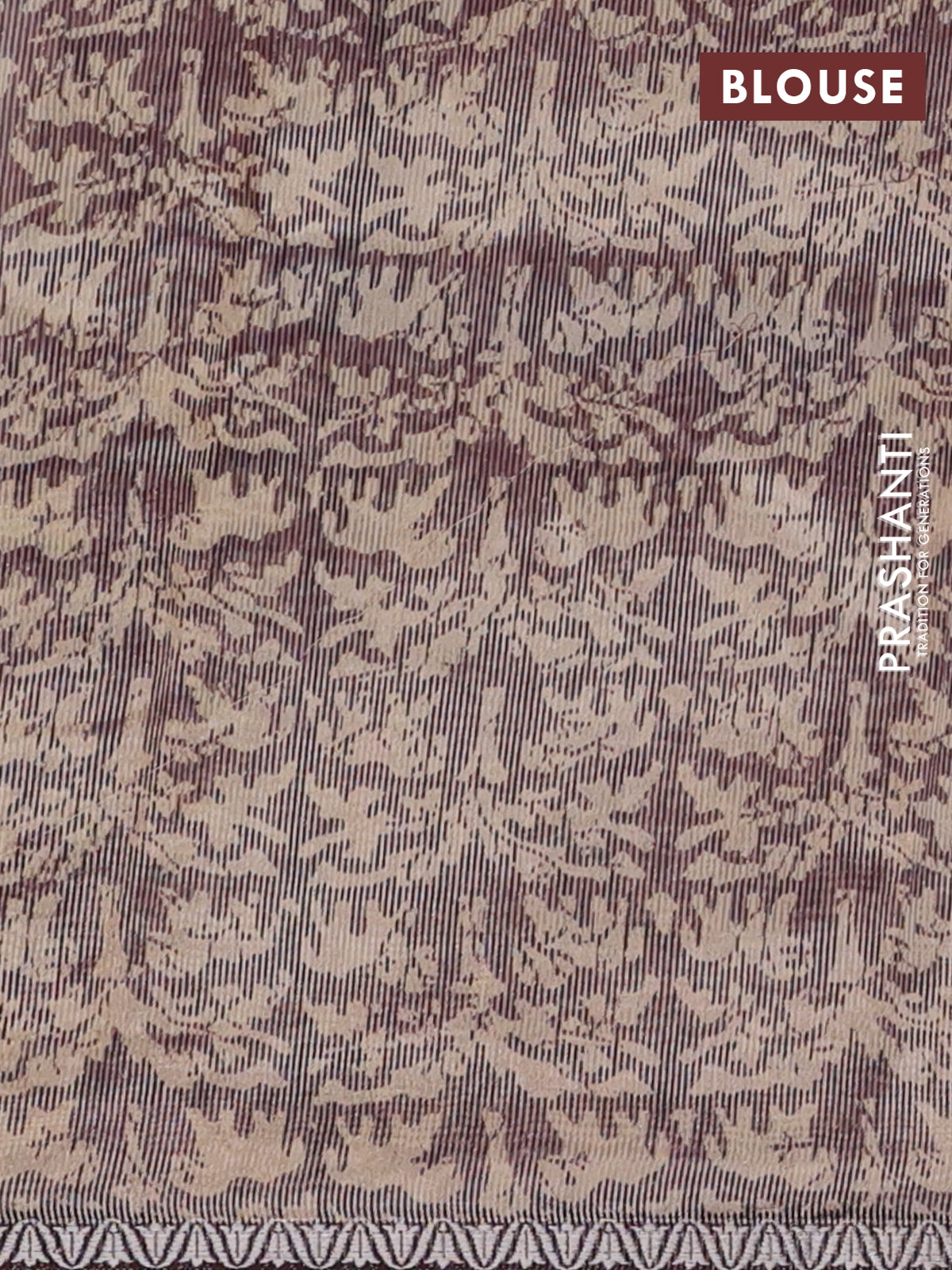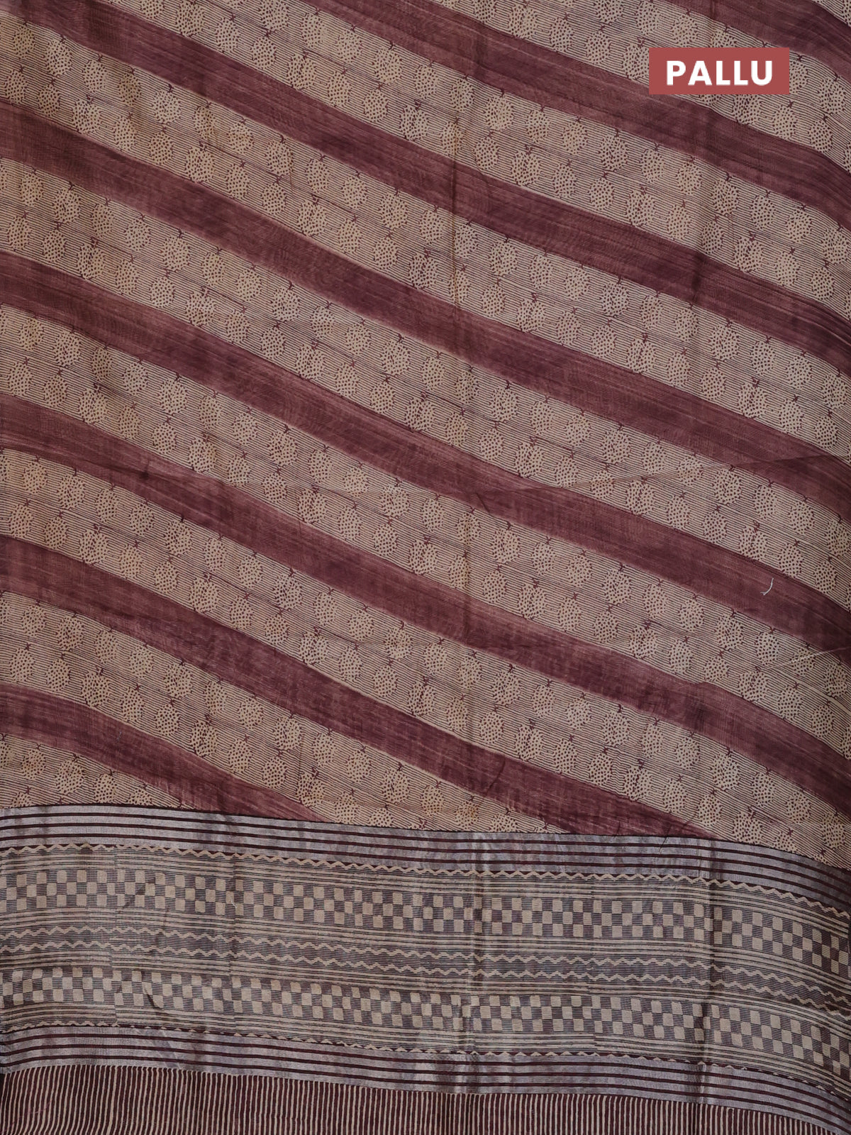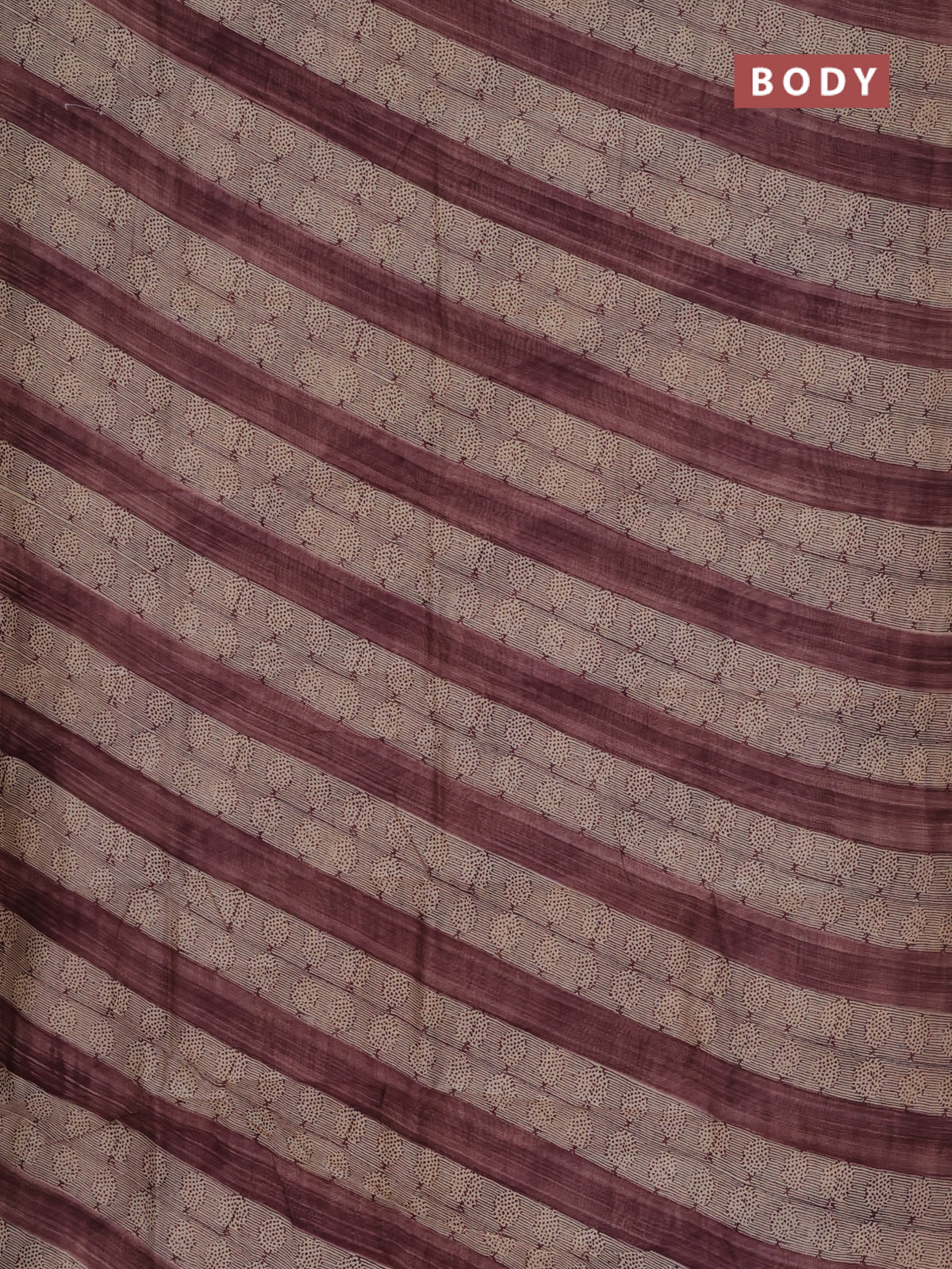 Chanderi silk cotton saree beige and rosy brown with allover prints and small zari woven border