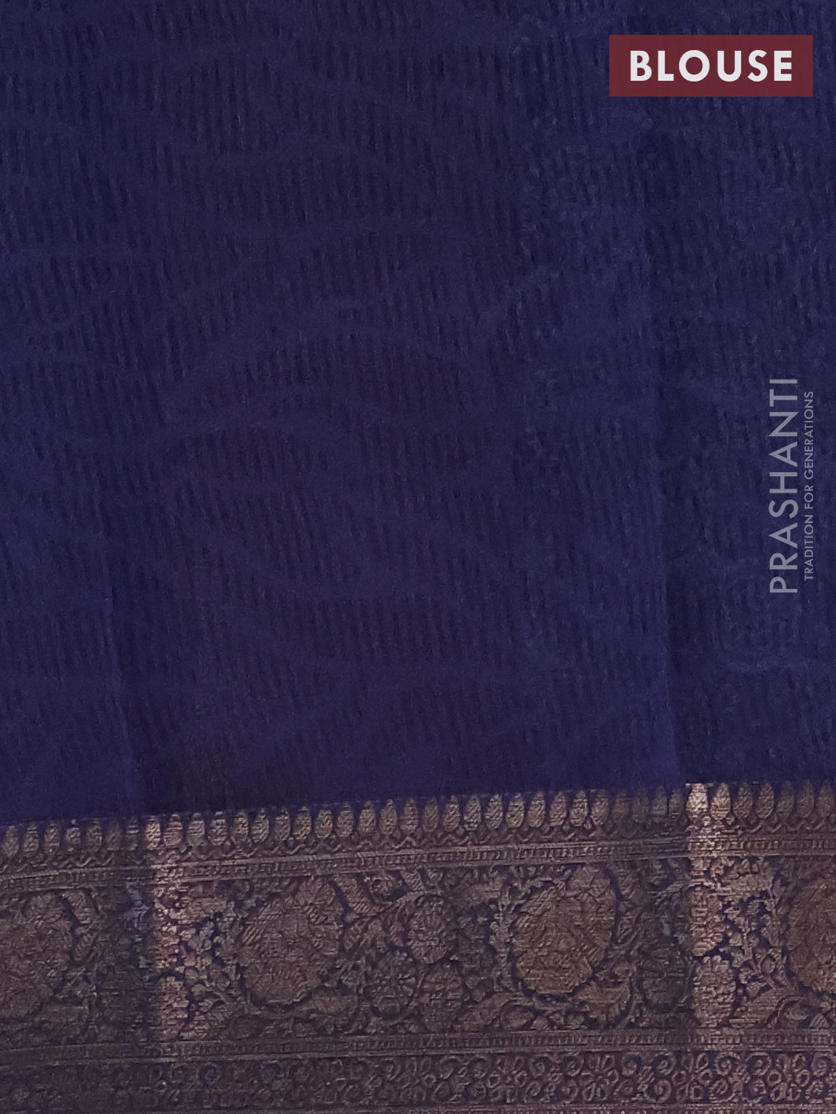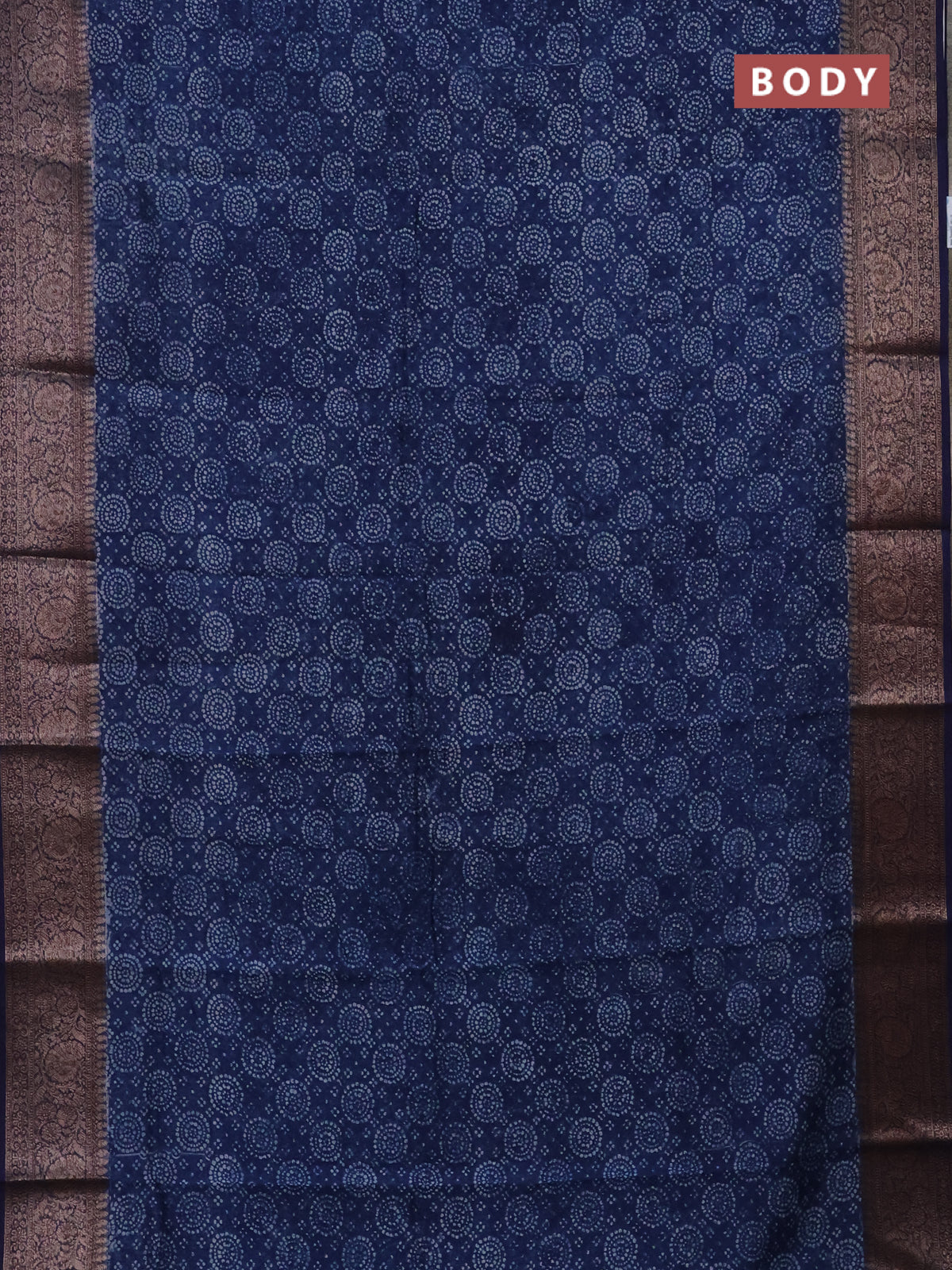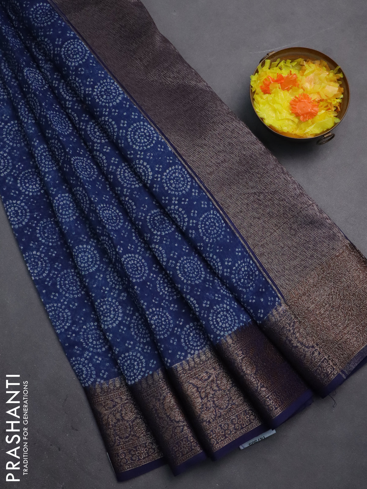 Chanderi silk cotton saree blue with allover prints and banarasi style border