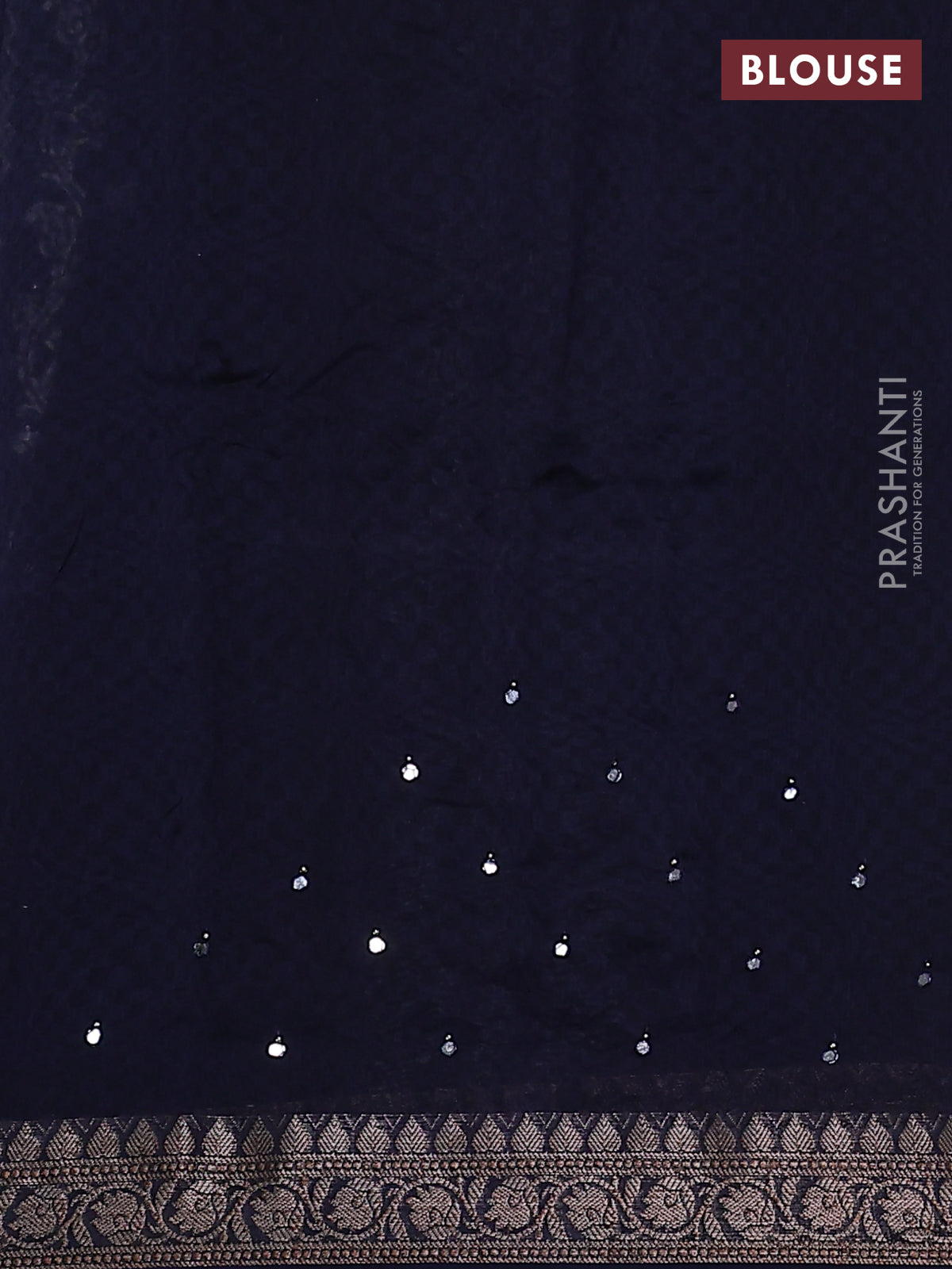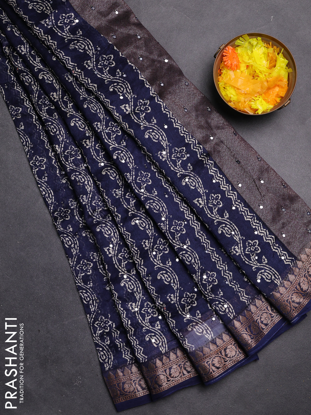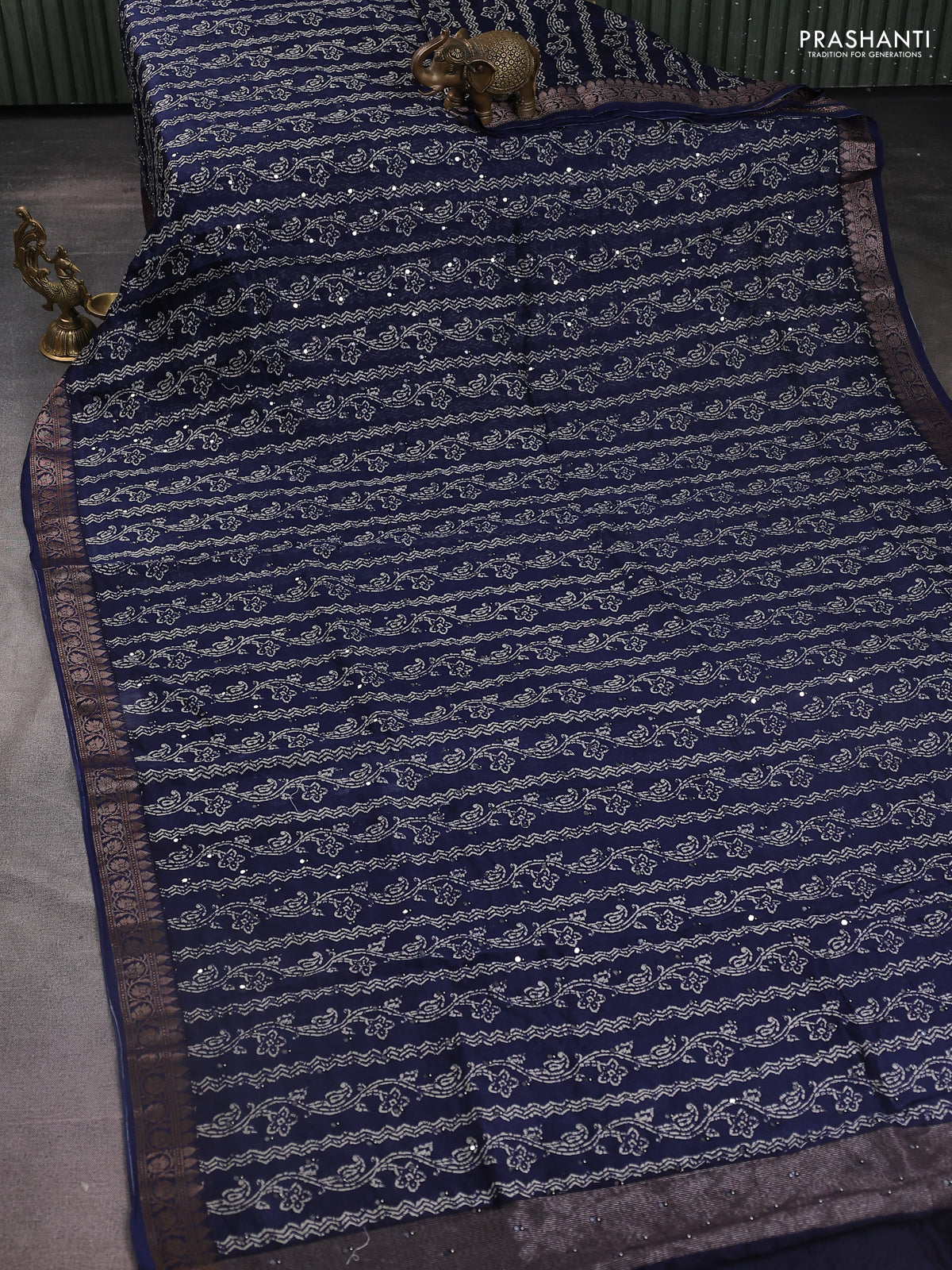 Chanderi silk cotton saree blue with allover prints & mirror work and zari woven border