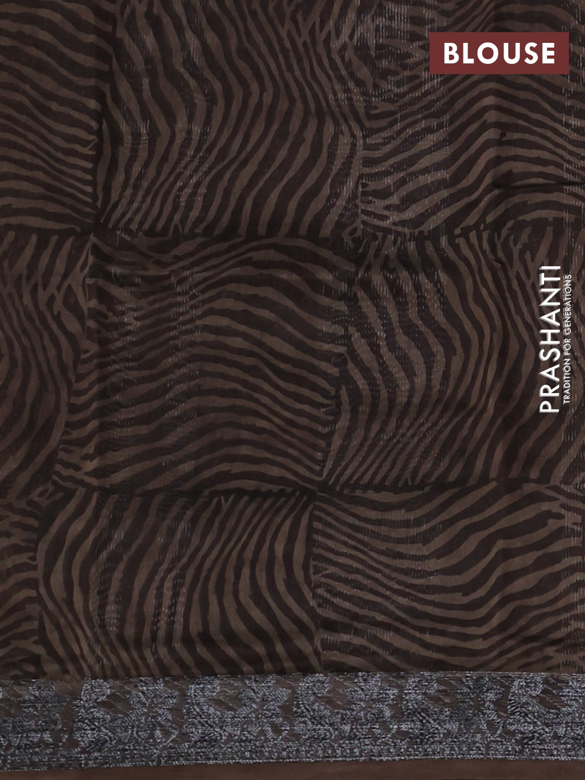 Chanderi silk cotton saree dark mustard and brown with allover zig zag prints and banarasi style border
