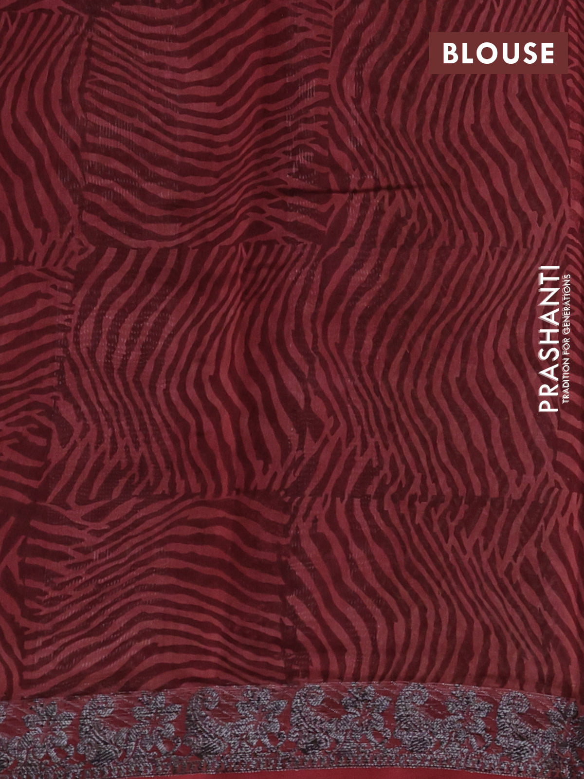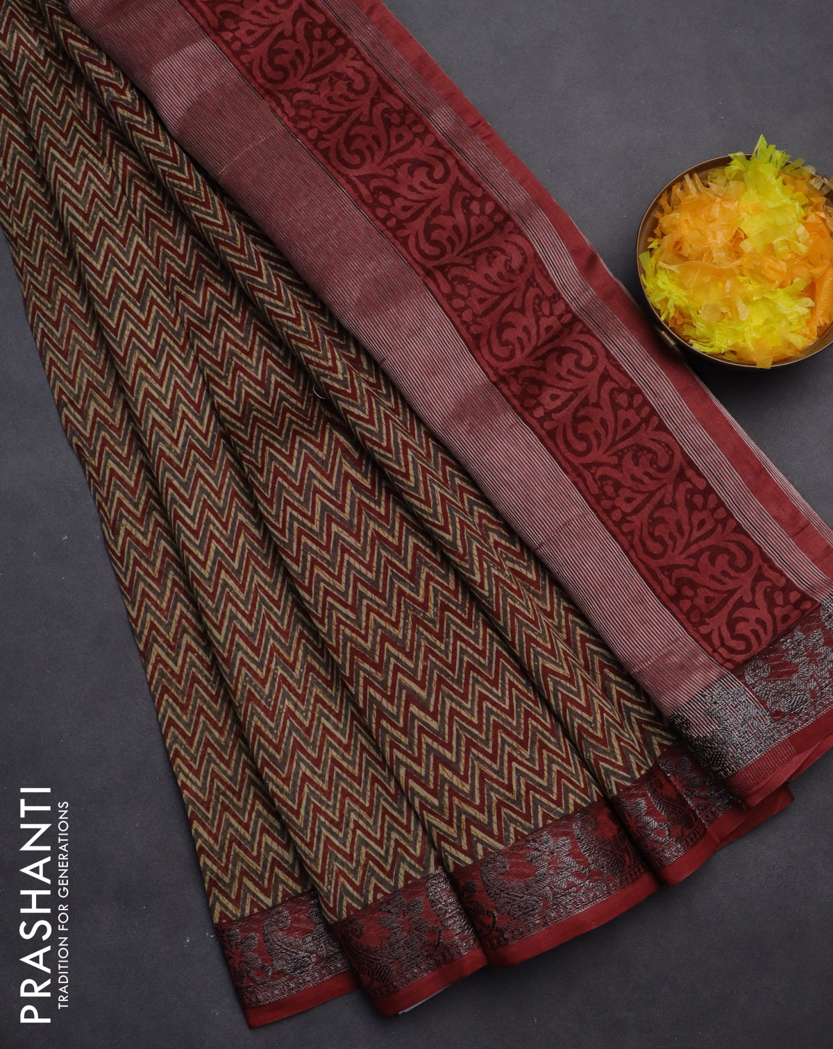 Chanderi silk cotton saree grey and maroon with allover zig zag prints and banarasi style border