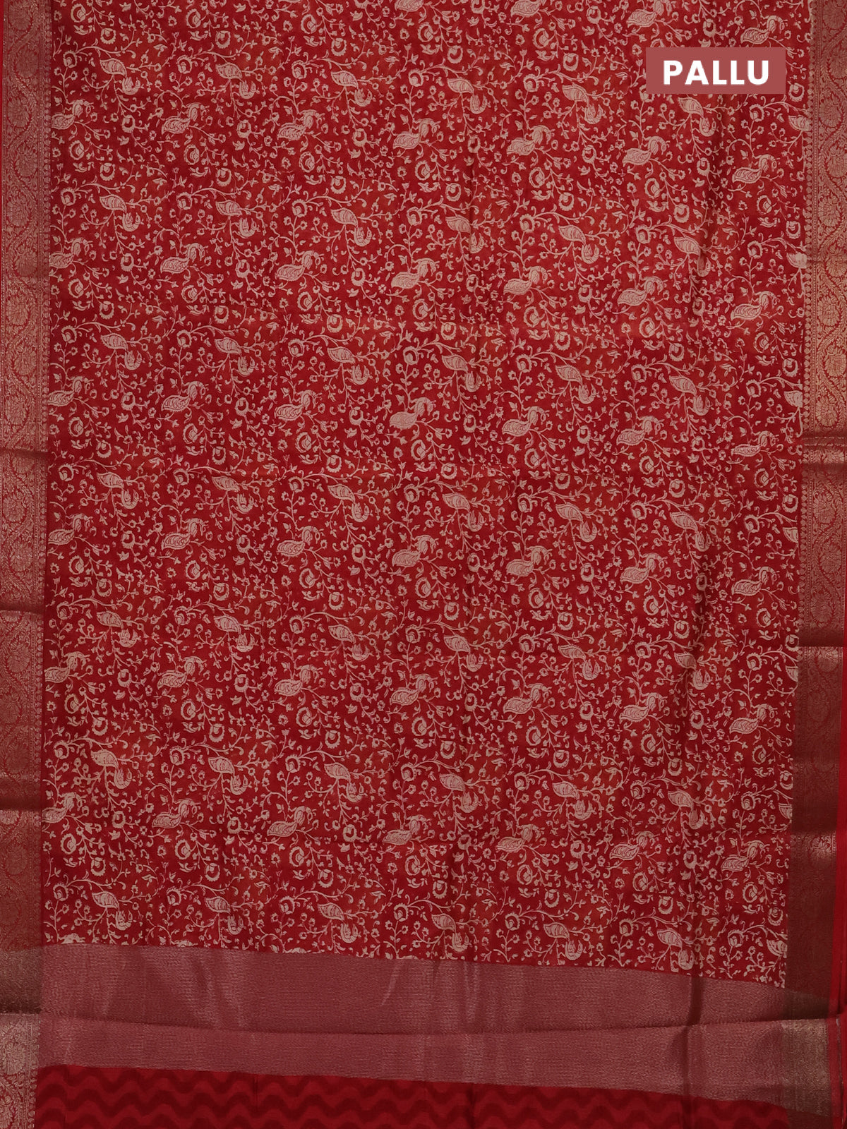 Chanderi silk cotton saree red with allover kalamkari prints and banarasi style border
