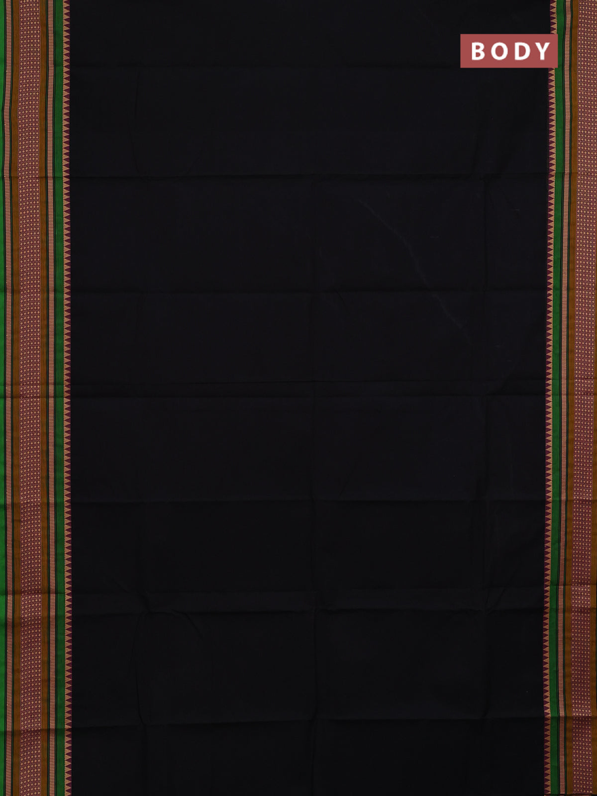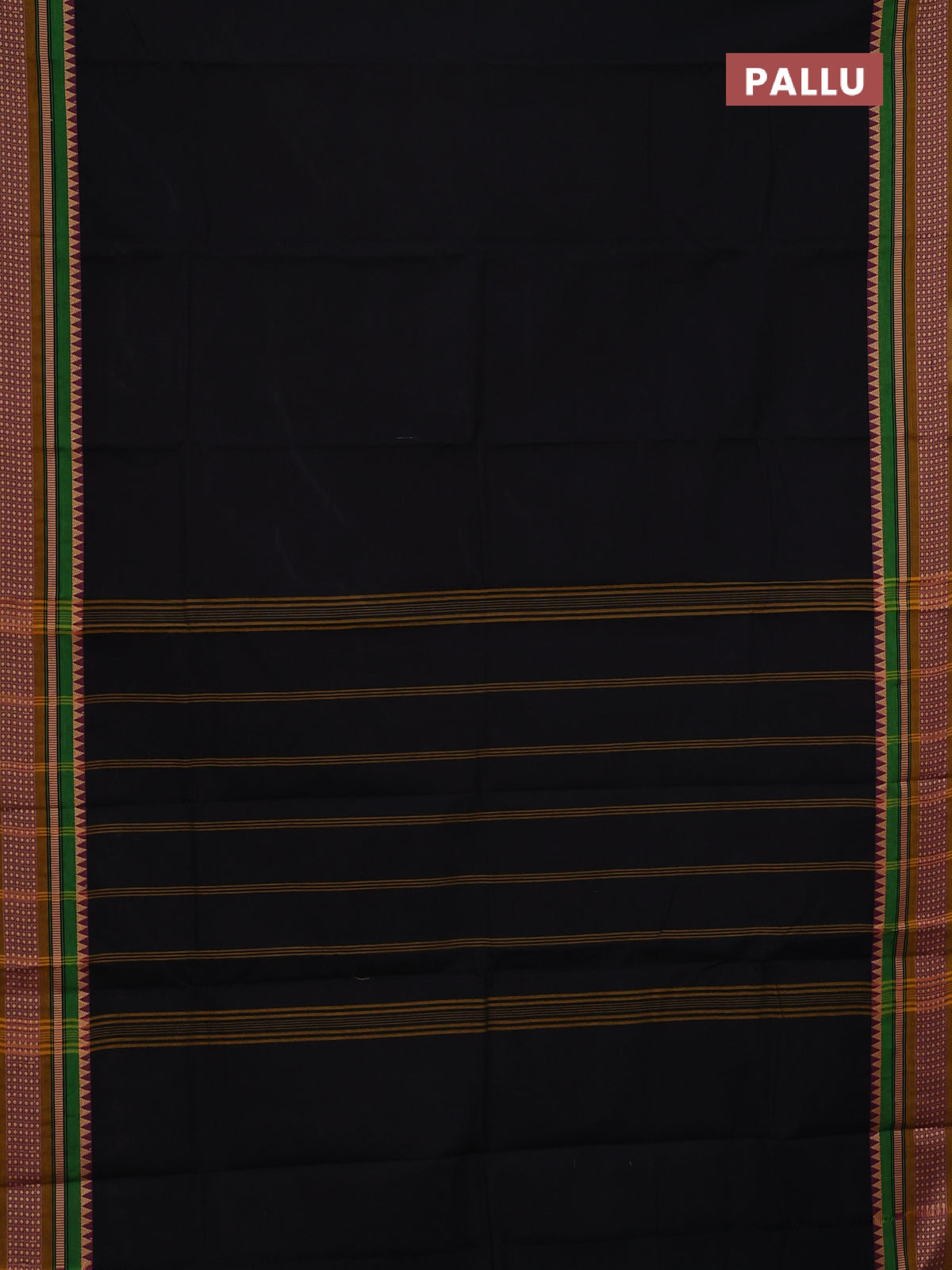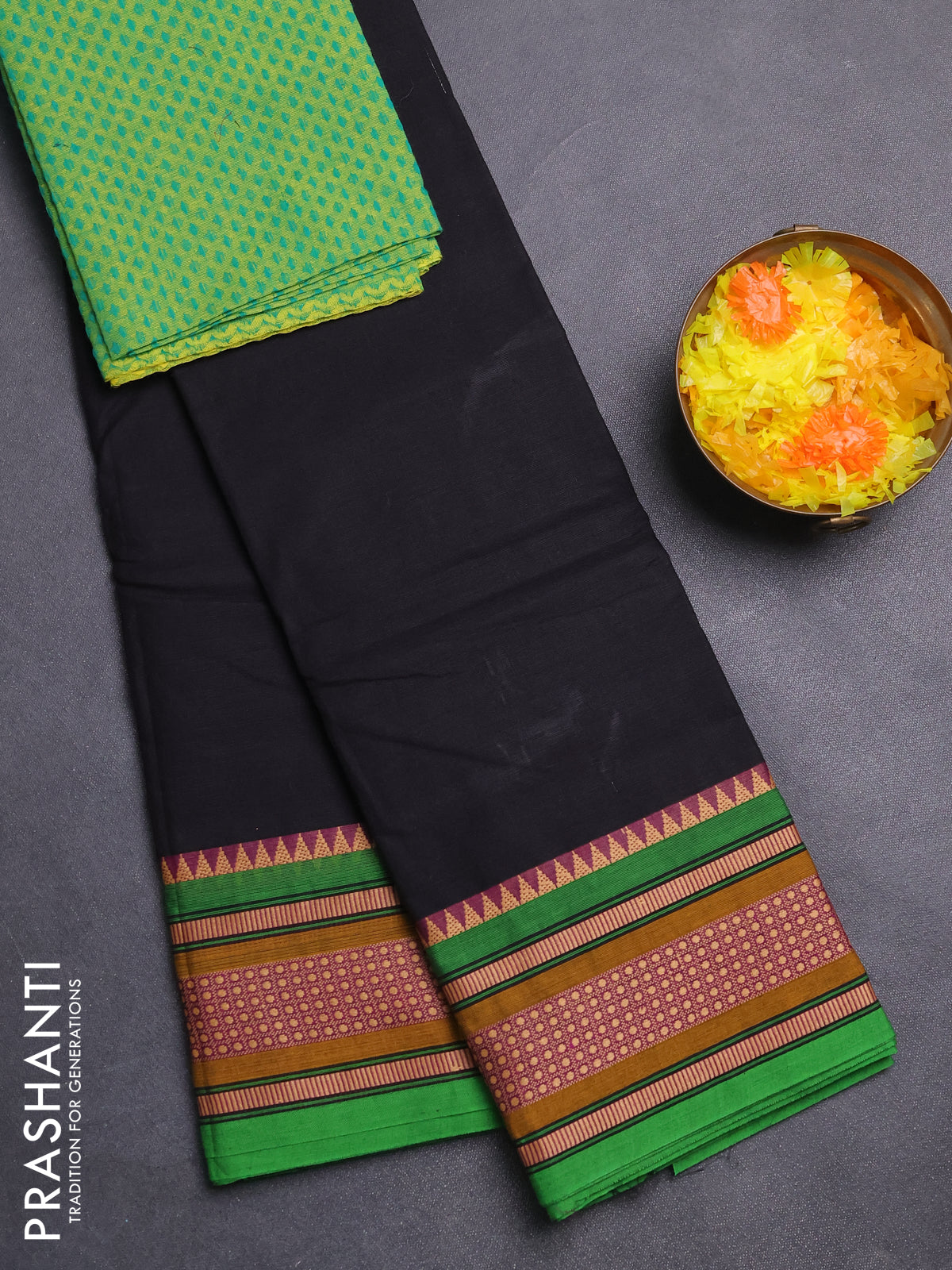 Chettinad cotton saree black and green with plain body and thread woven border