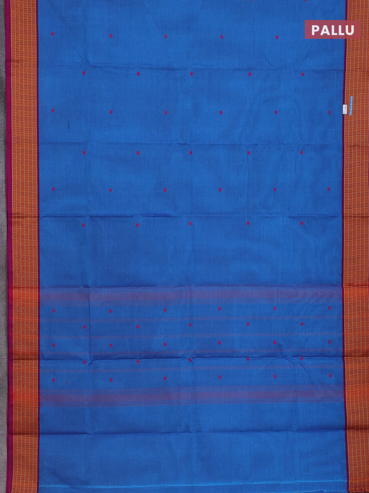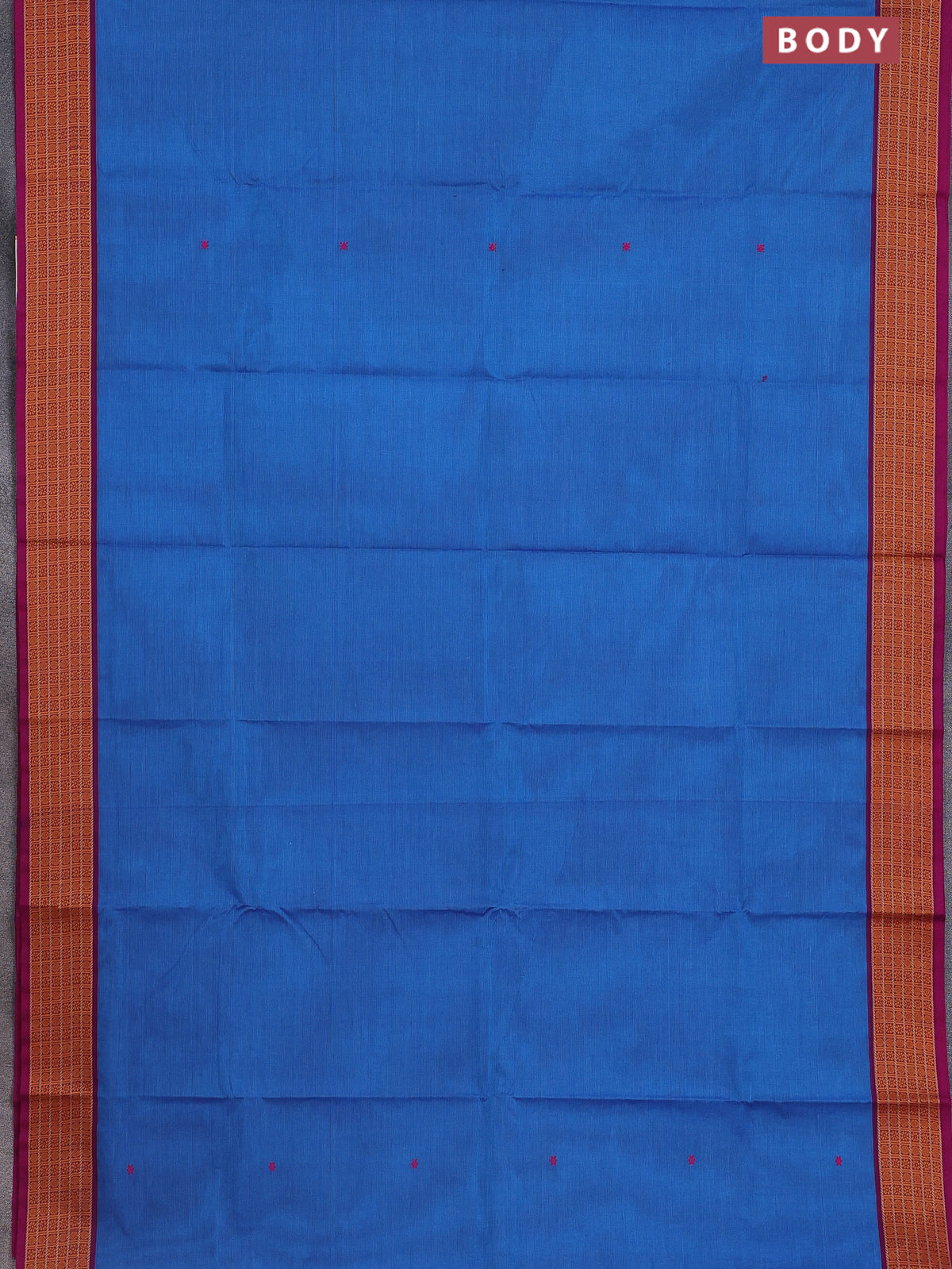 Chettinad cotton saree cs blue and magenta pink with thread woven buttas and thread woven border
