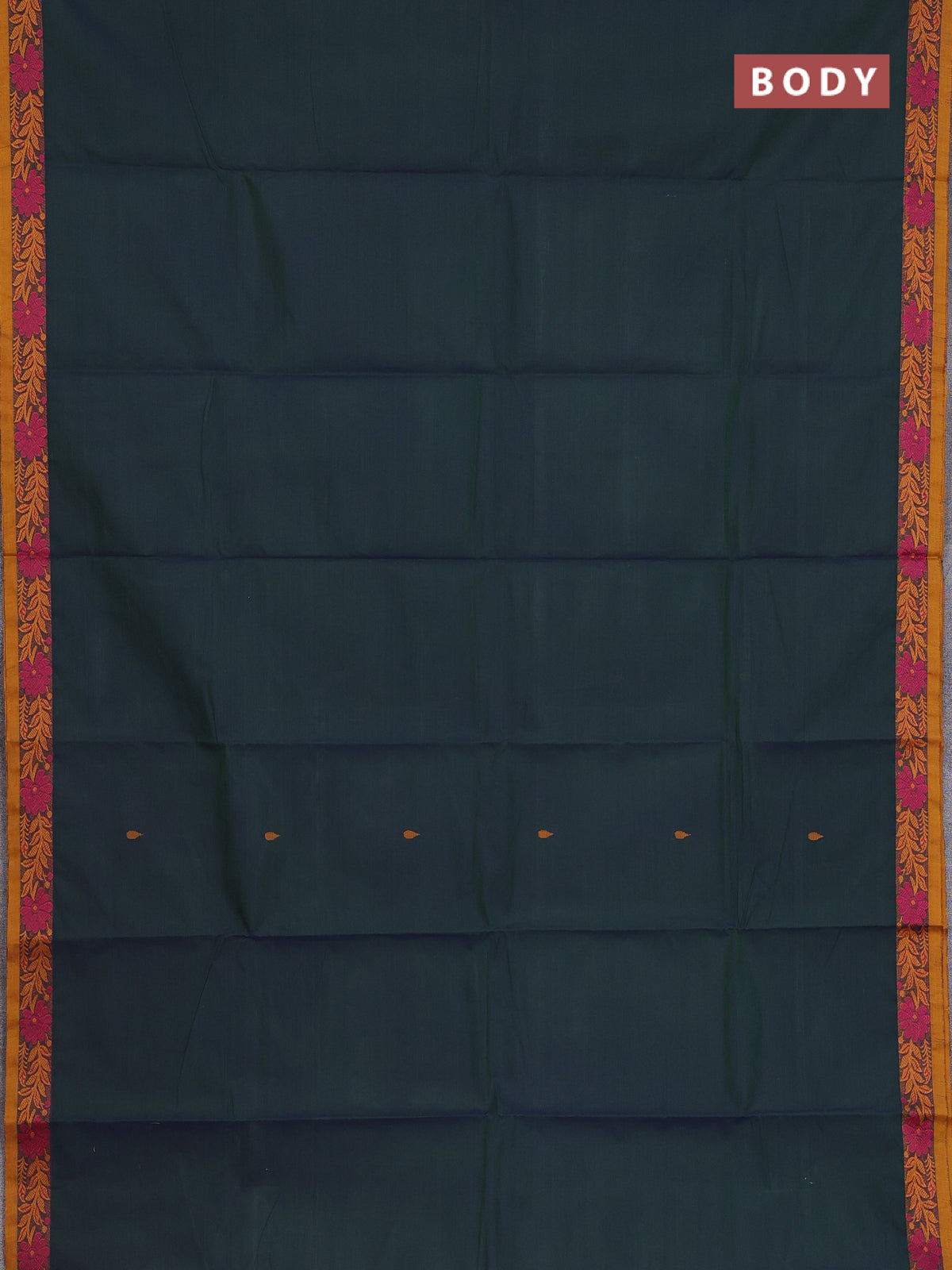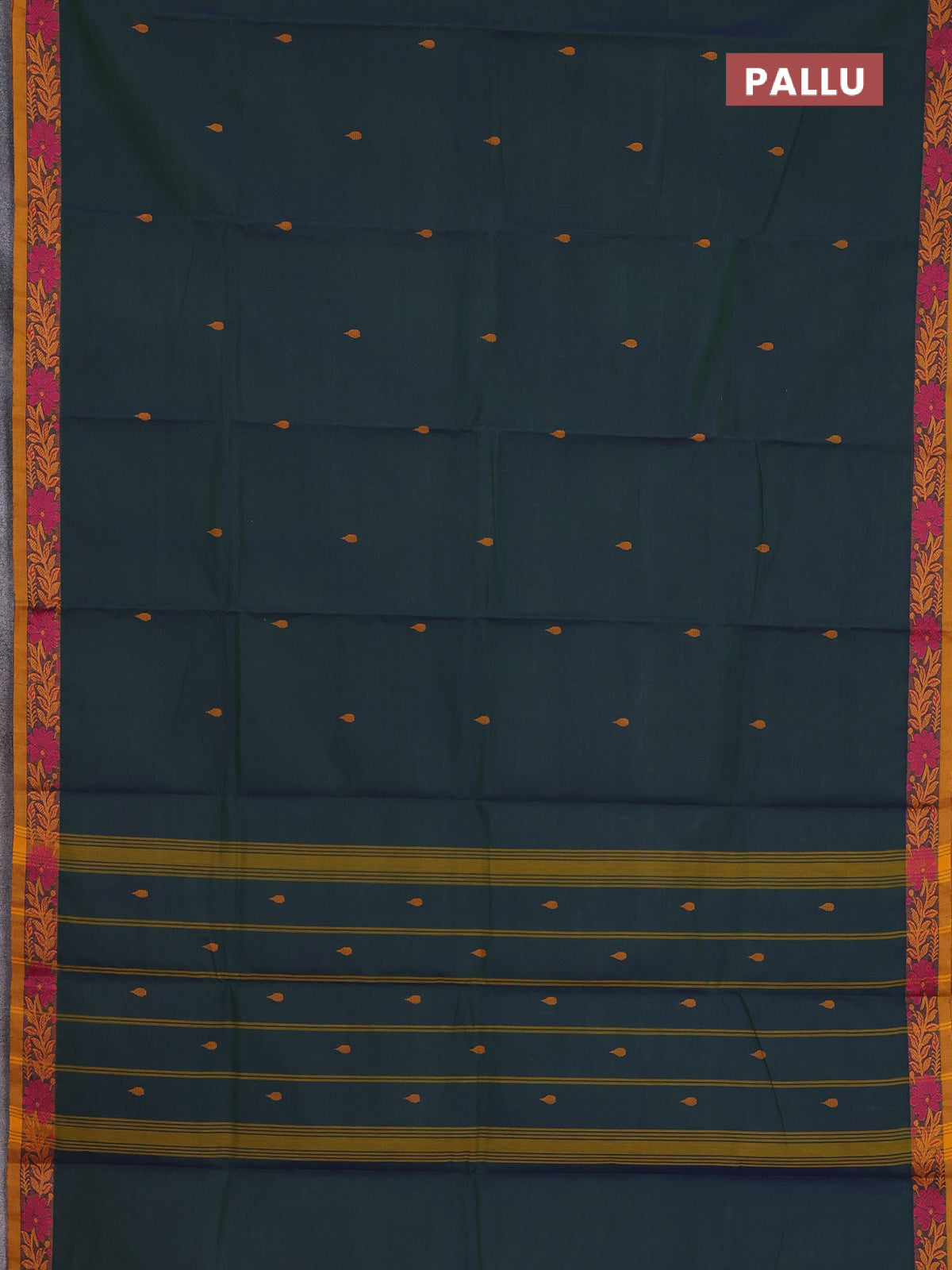 Chettinad cotton saree dual shade of bluish green and dark mustard with thread woven buttas and thread woven border
