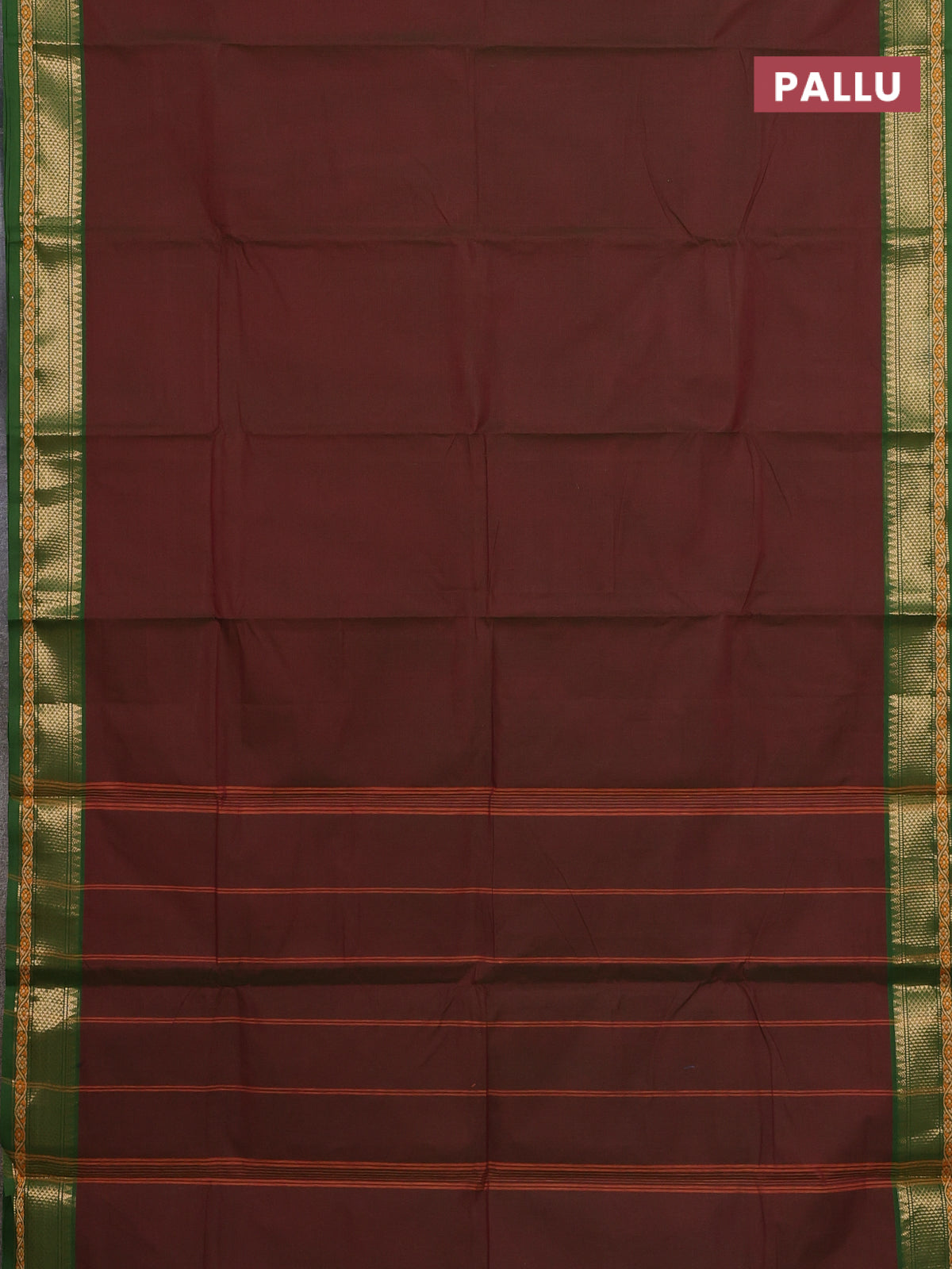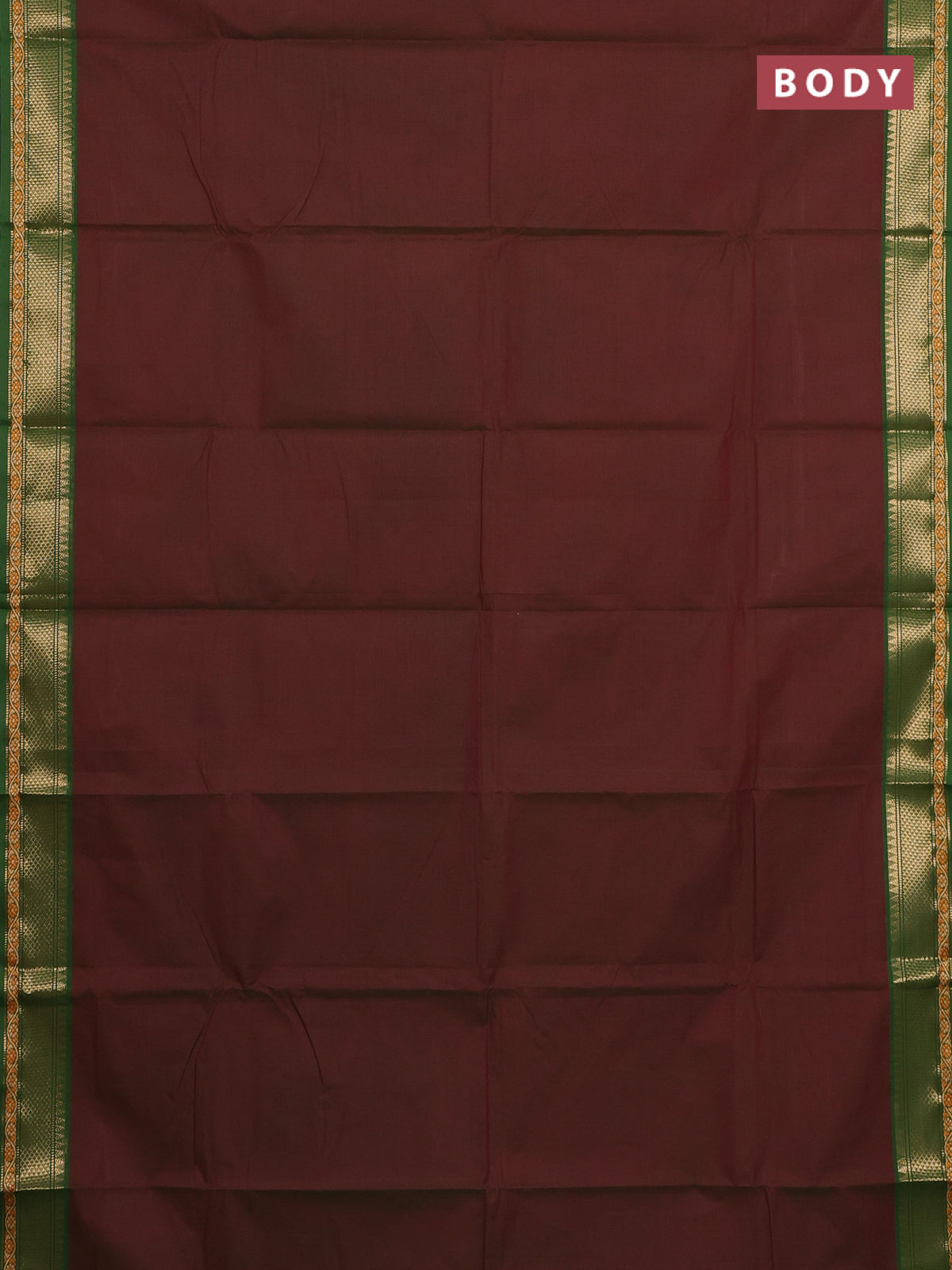 Chettinad cotton saree dual shade of maroon and green with plain body and zari woven border