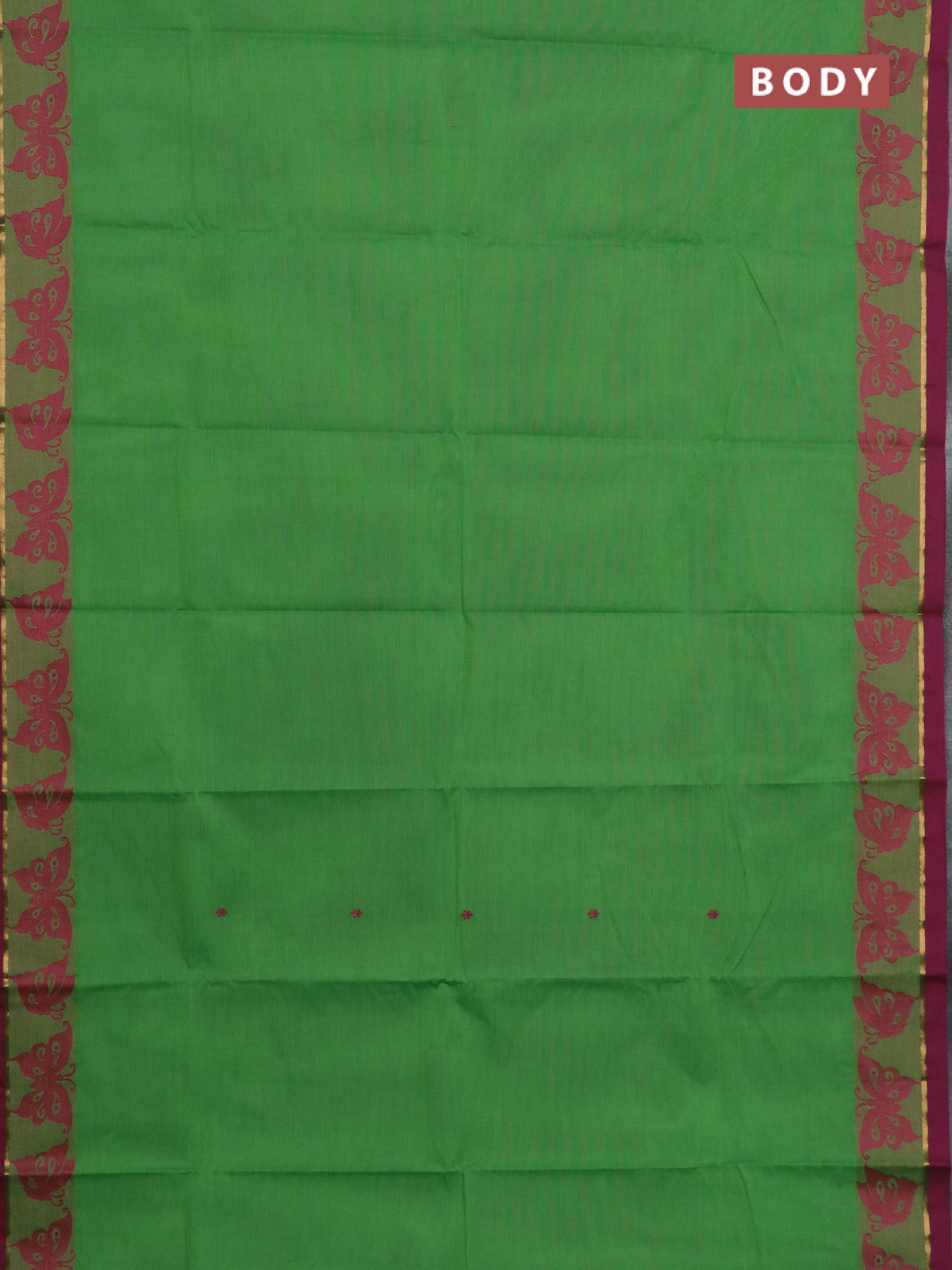 Chettinad cotton saree green and pink with thread woven buttas and thread woven butterfly border