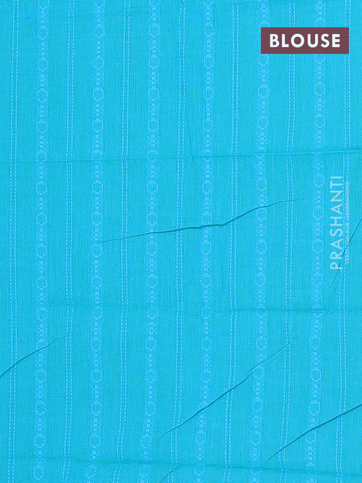 Chettinad cotton saree green and teal blue with allover thread woven stripes pattern and zari woven border