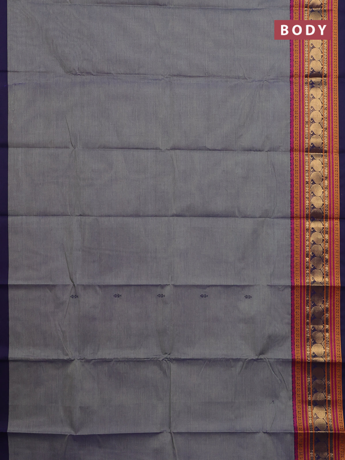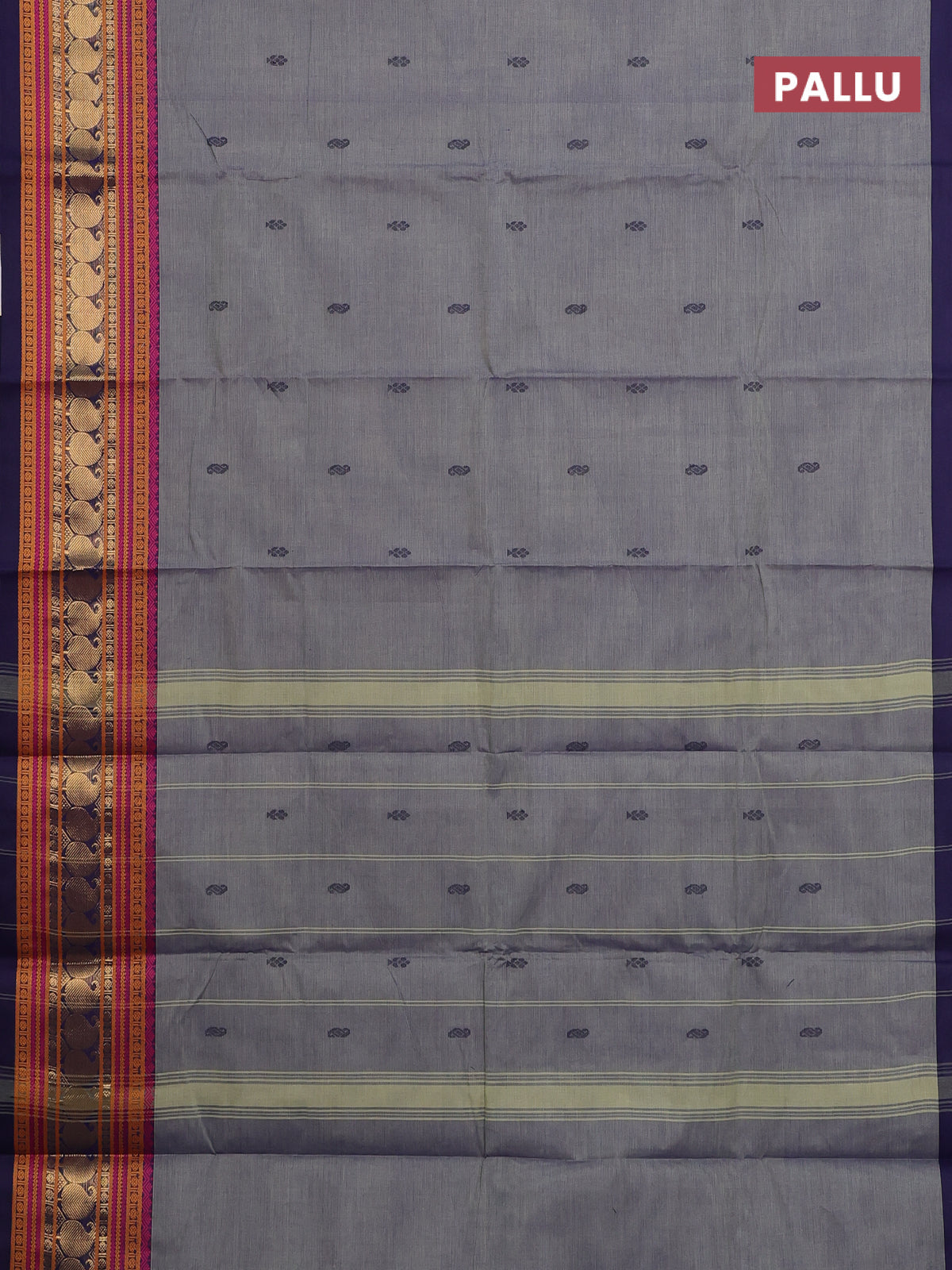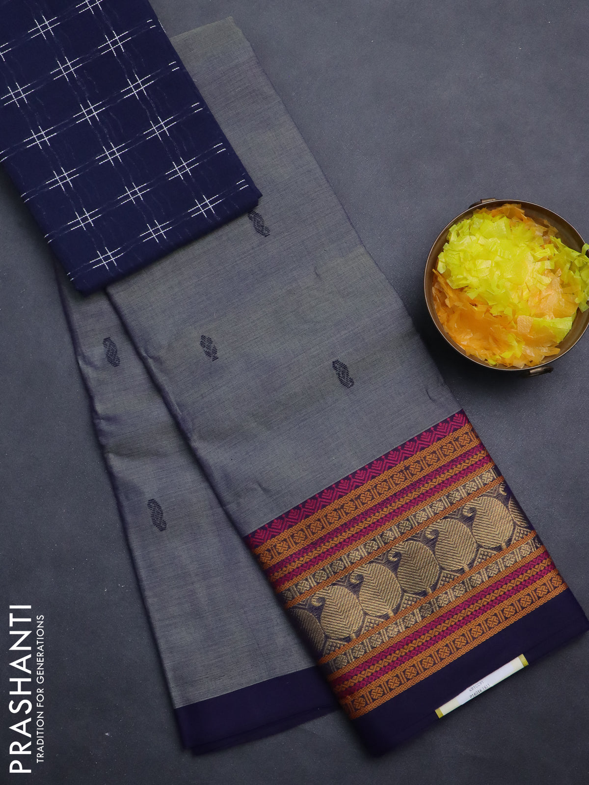 Chettinad cotton saree greyish blue and navy blue with thread woven buttas and long thread & zari woven border