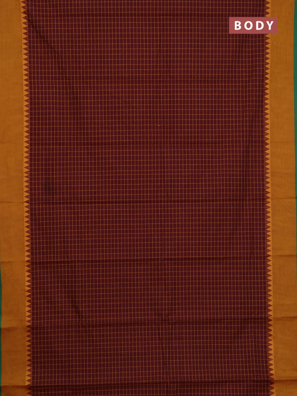 Chettinad cotton saree maroon shade and mustard yellow with allover checked pattern and temple design border