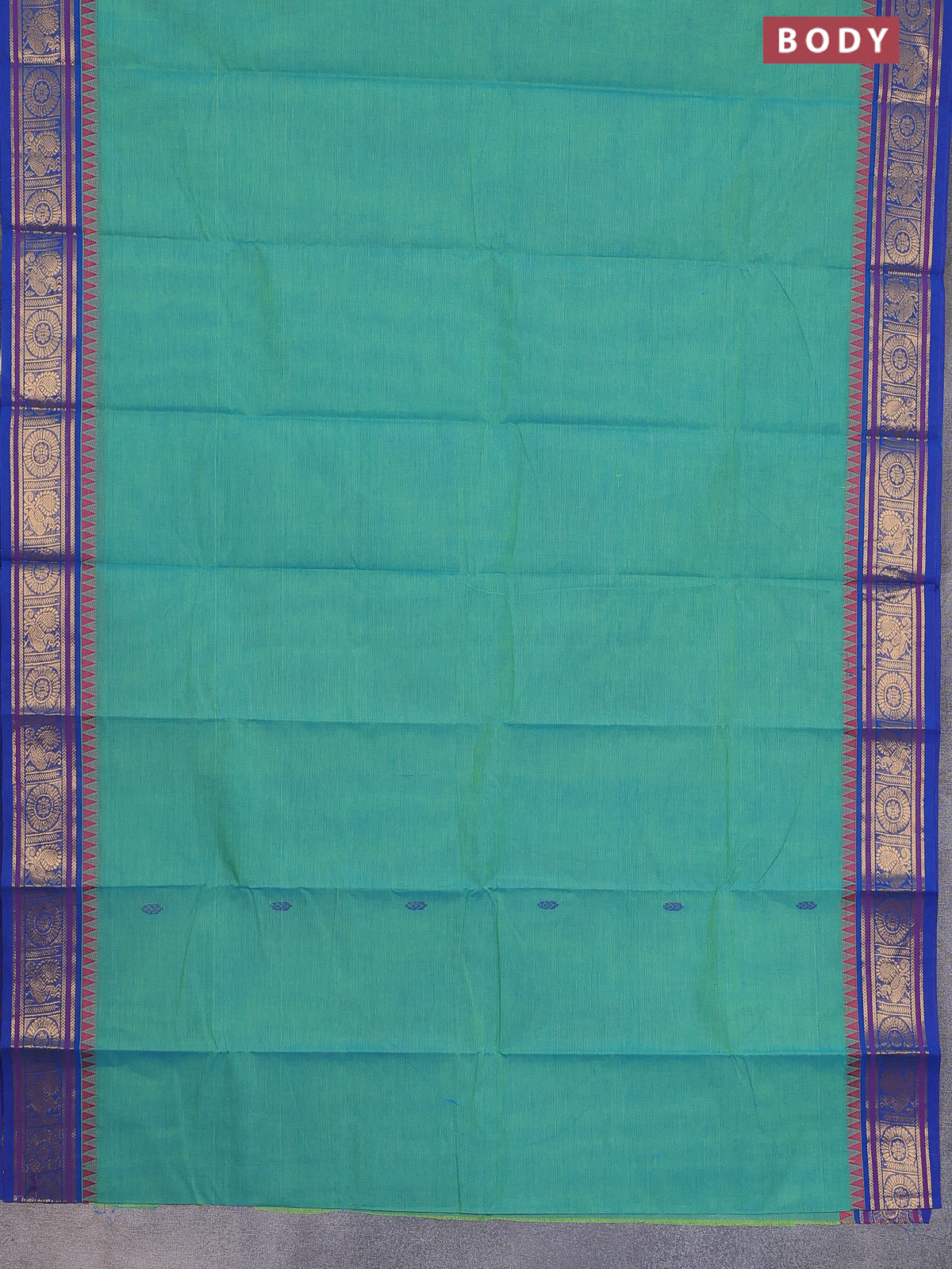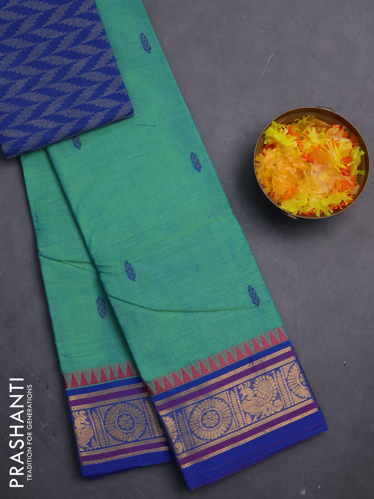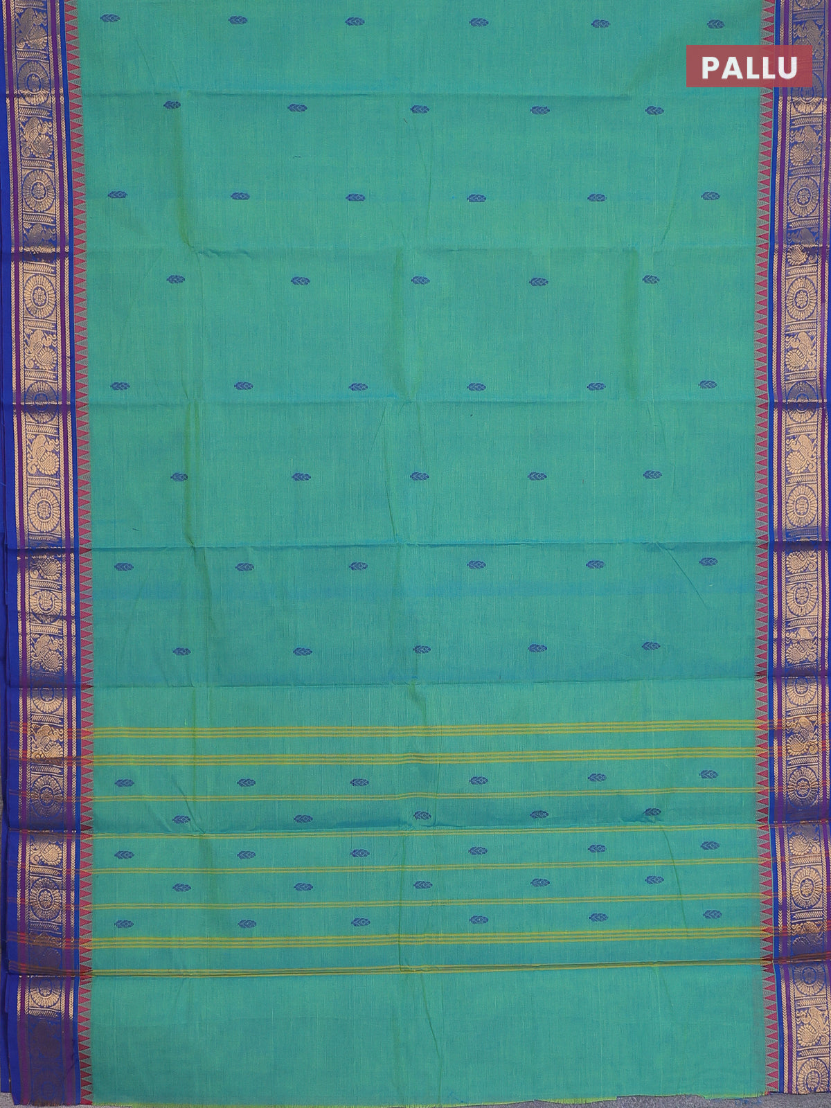 Chettinad cotton saree teal green and blue with thread woven buttas and zari woven border