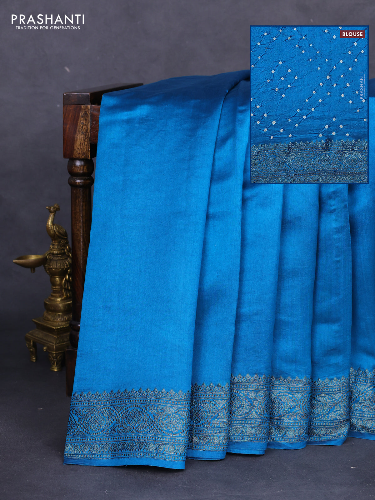 Chiniya silk saree cs blue with plain body and woven border