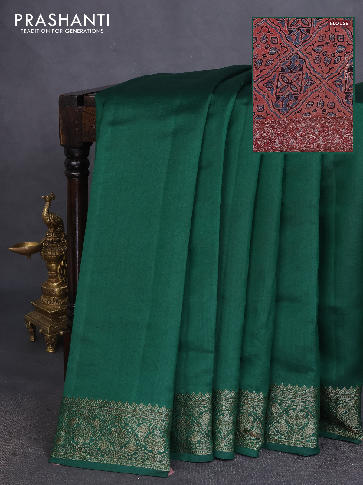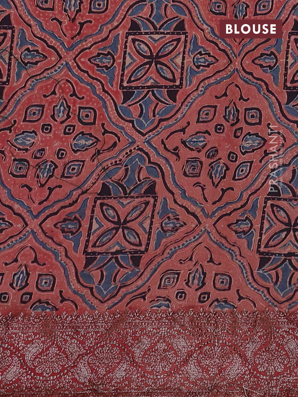 Material : Chiniya Silk SILK MARK CERTIFIED Blouse : Ajrakh printed blouse Length of saree : 6.2 mts (5.5 mts... Read more