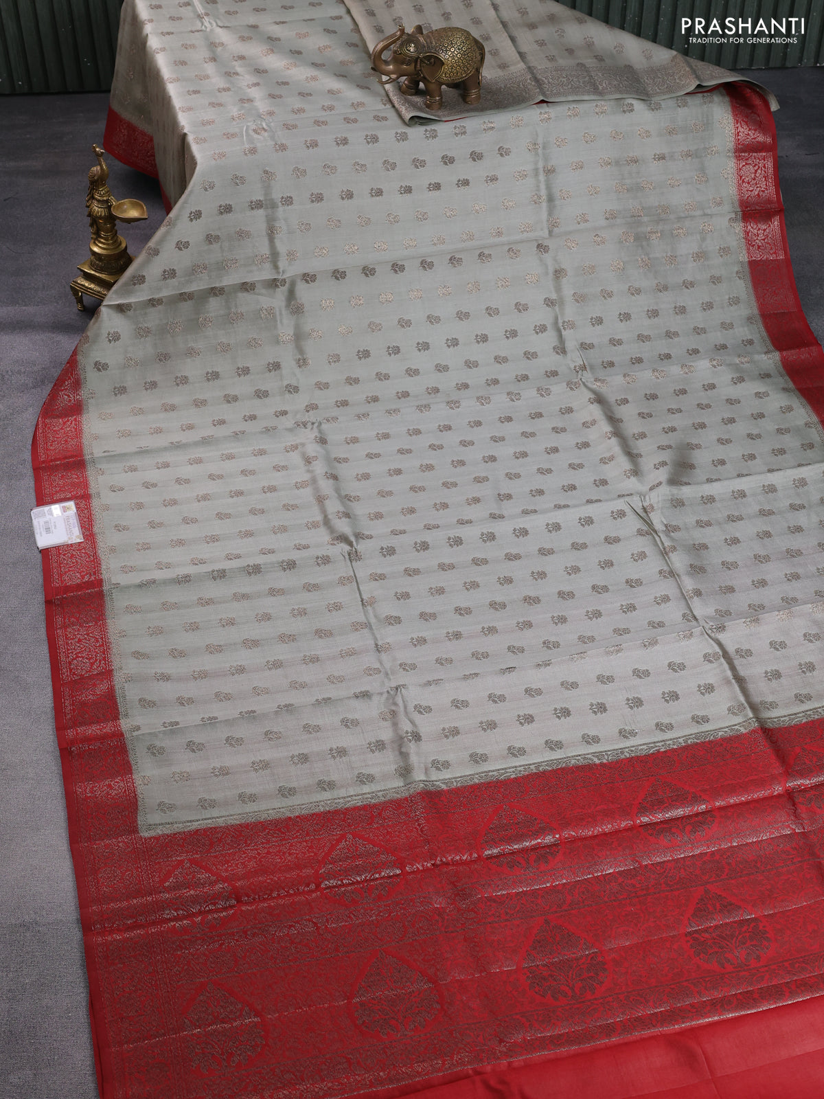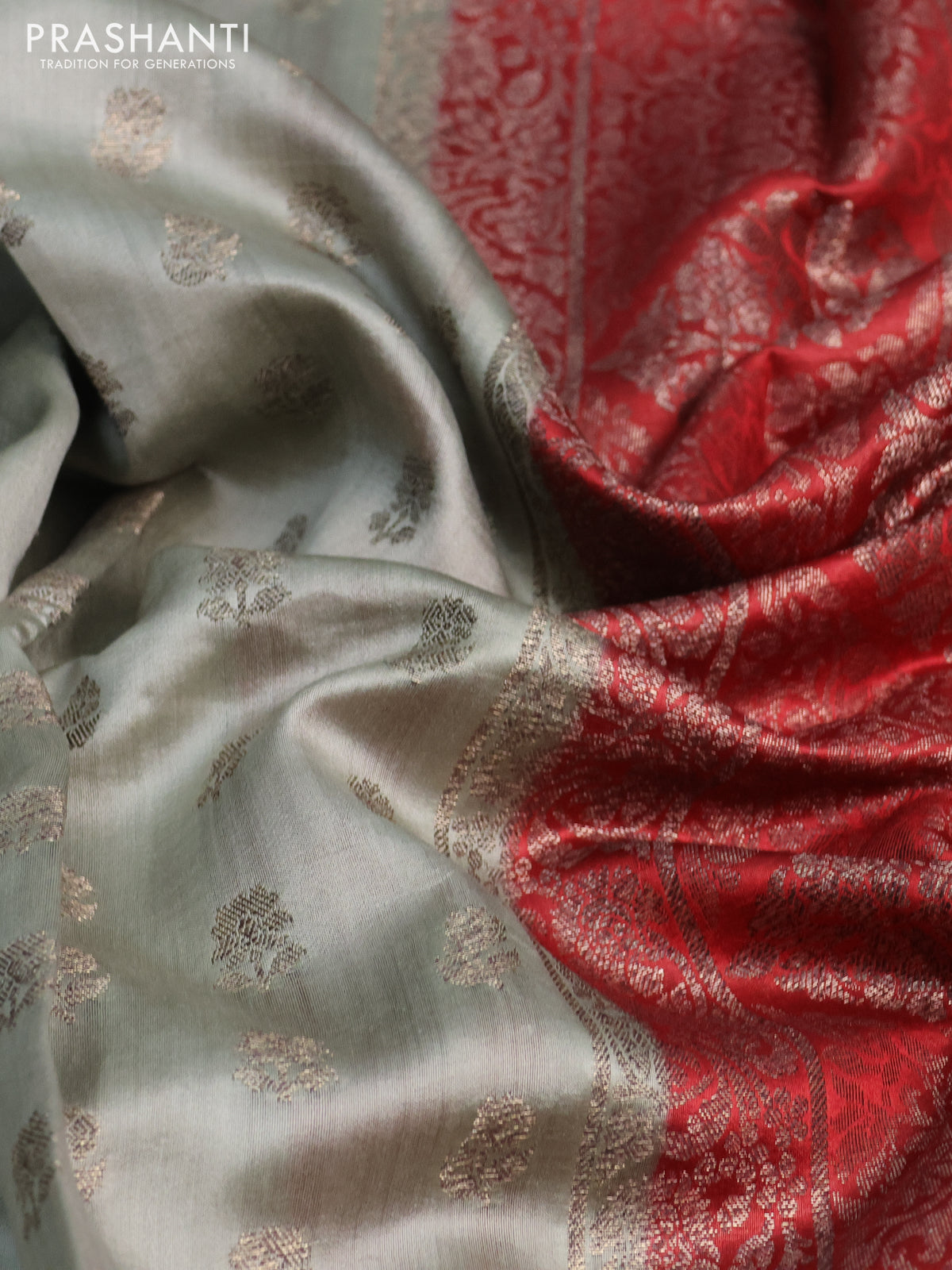 Chiniya silk saree grey and red with allover thread & zari woven buttas and banarasi style border