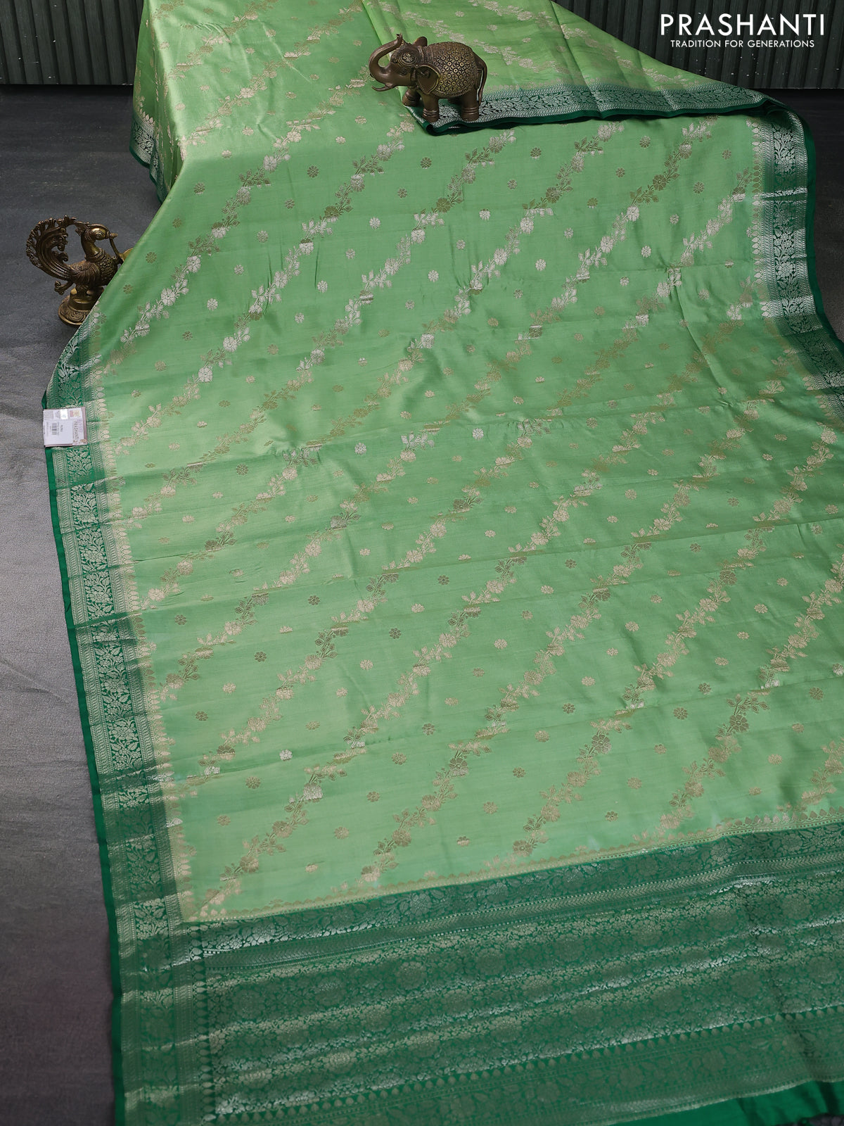 Chiniya silk saree light green and dark green with allover zari weaves and zari woven border