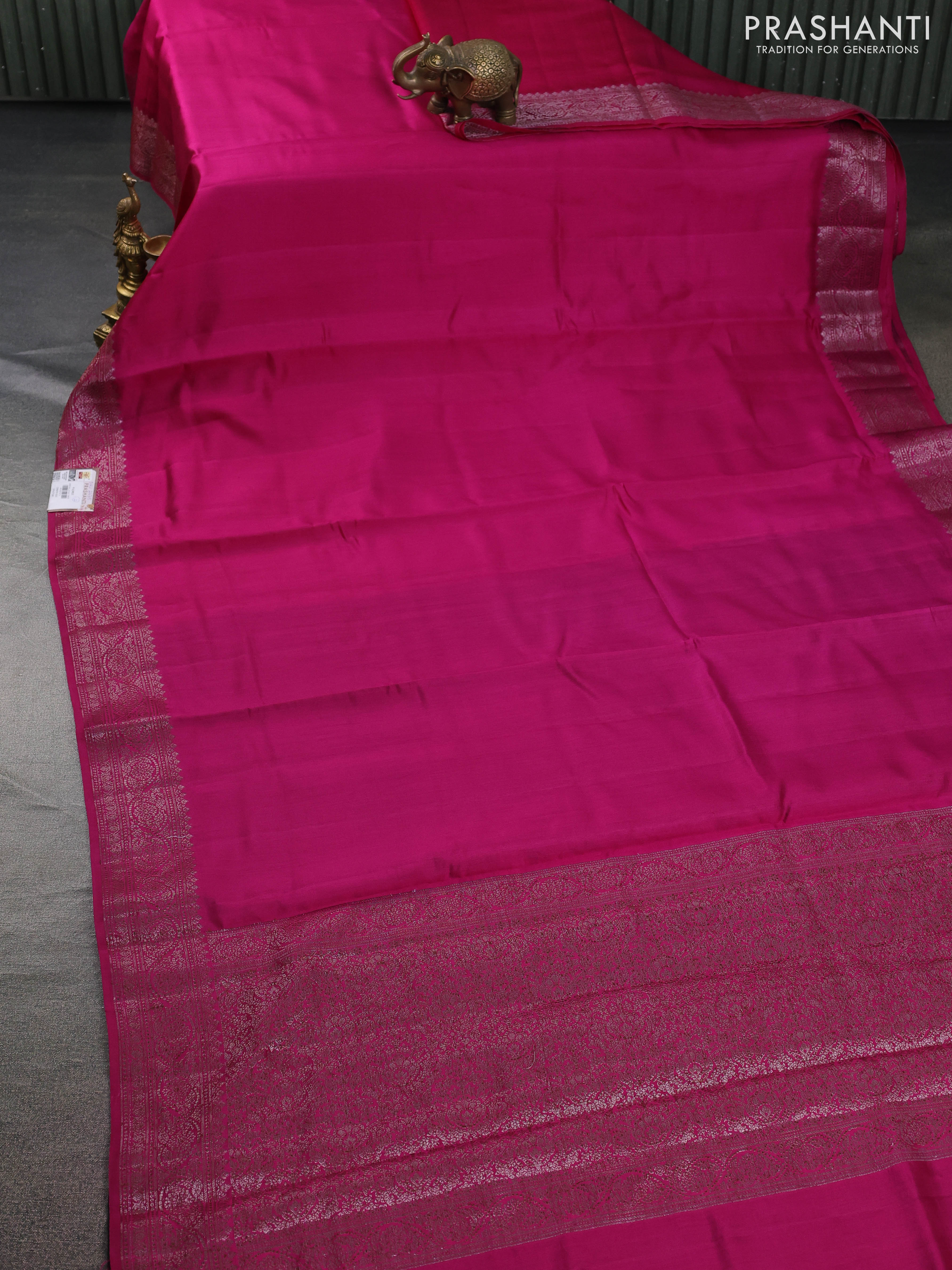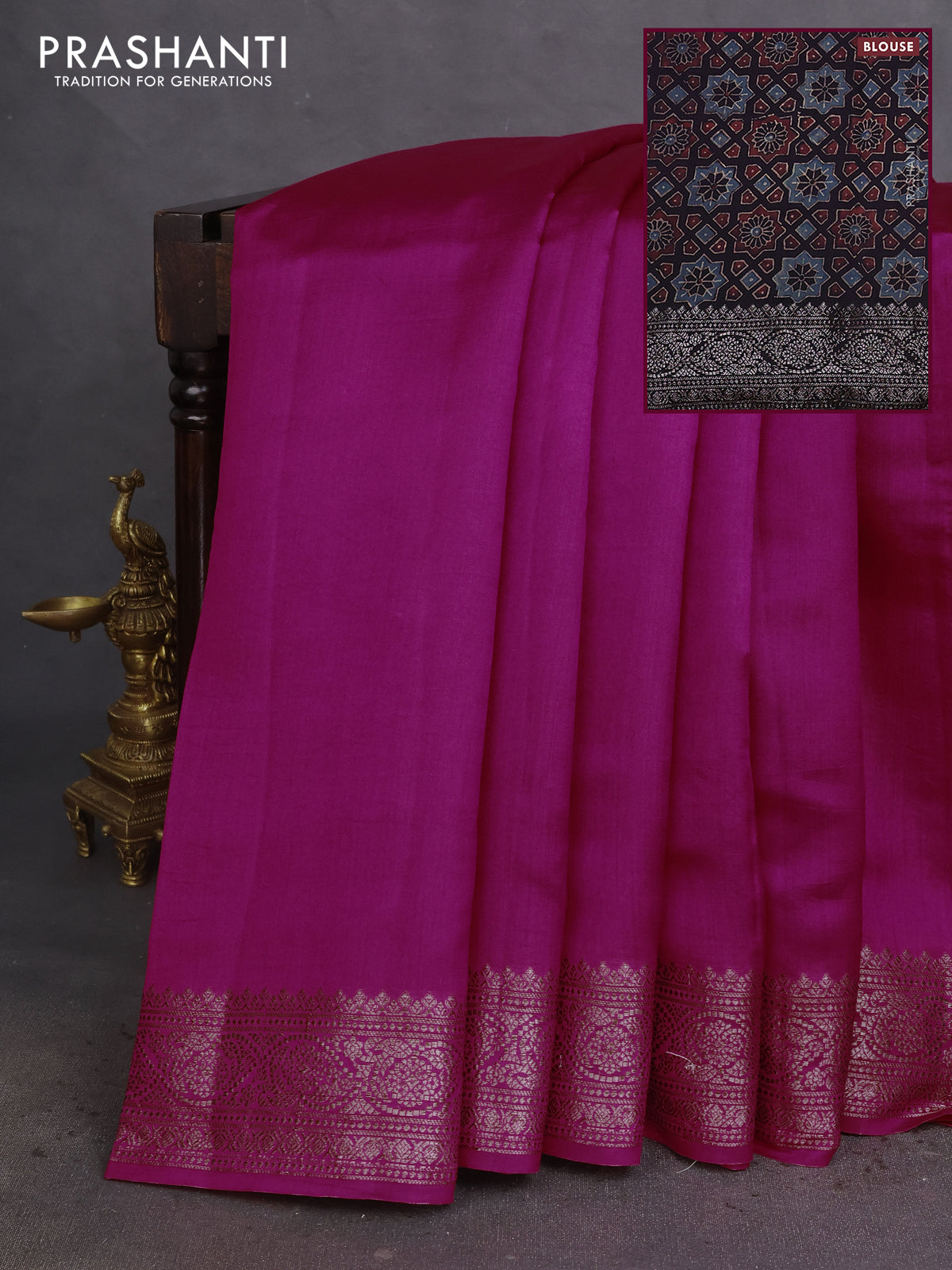 Chiniya silk saree magenta pink and black with plain body and woven border