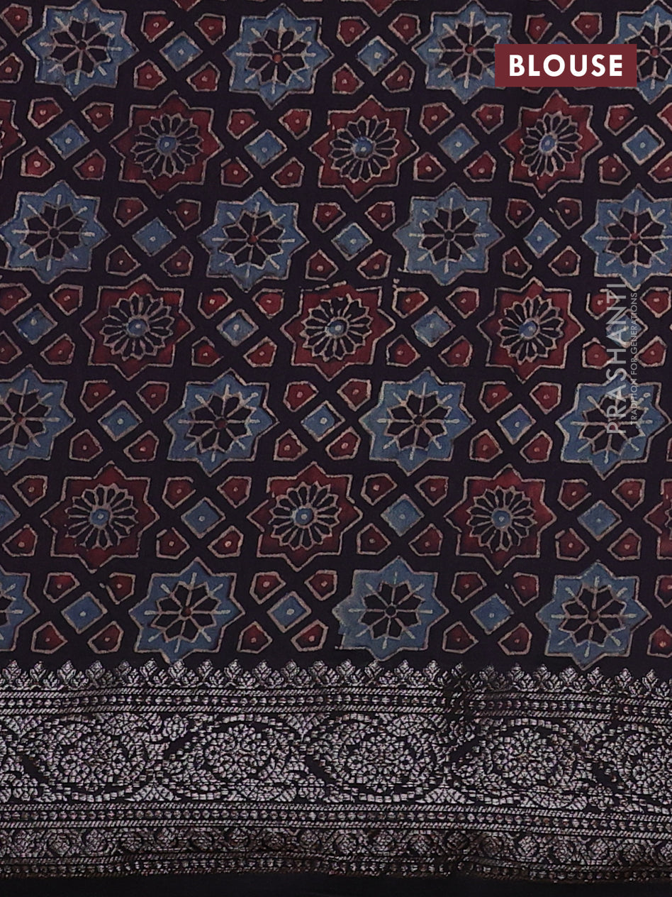 Material : Chiniya Silk SILK MARK CERTIFIED Blouse : Ajrakh printed blouse Length of saree : 6.2 mts (5.5 mts... Read more