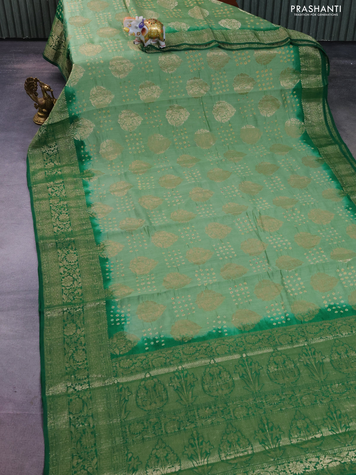 Chiniya silk saree pastel green and green with allover zari weaves & bandhini prints and zari woven border