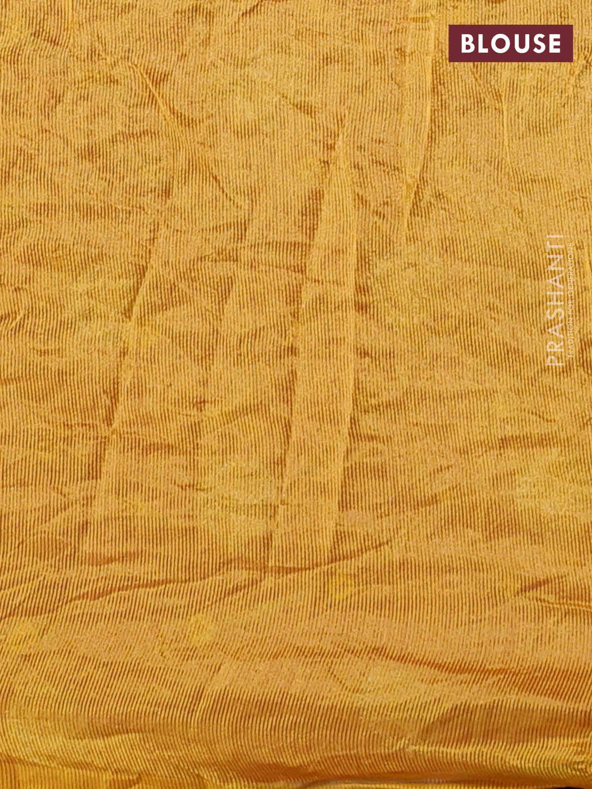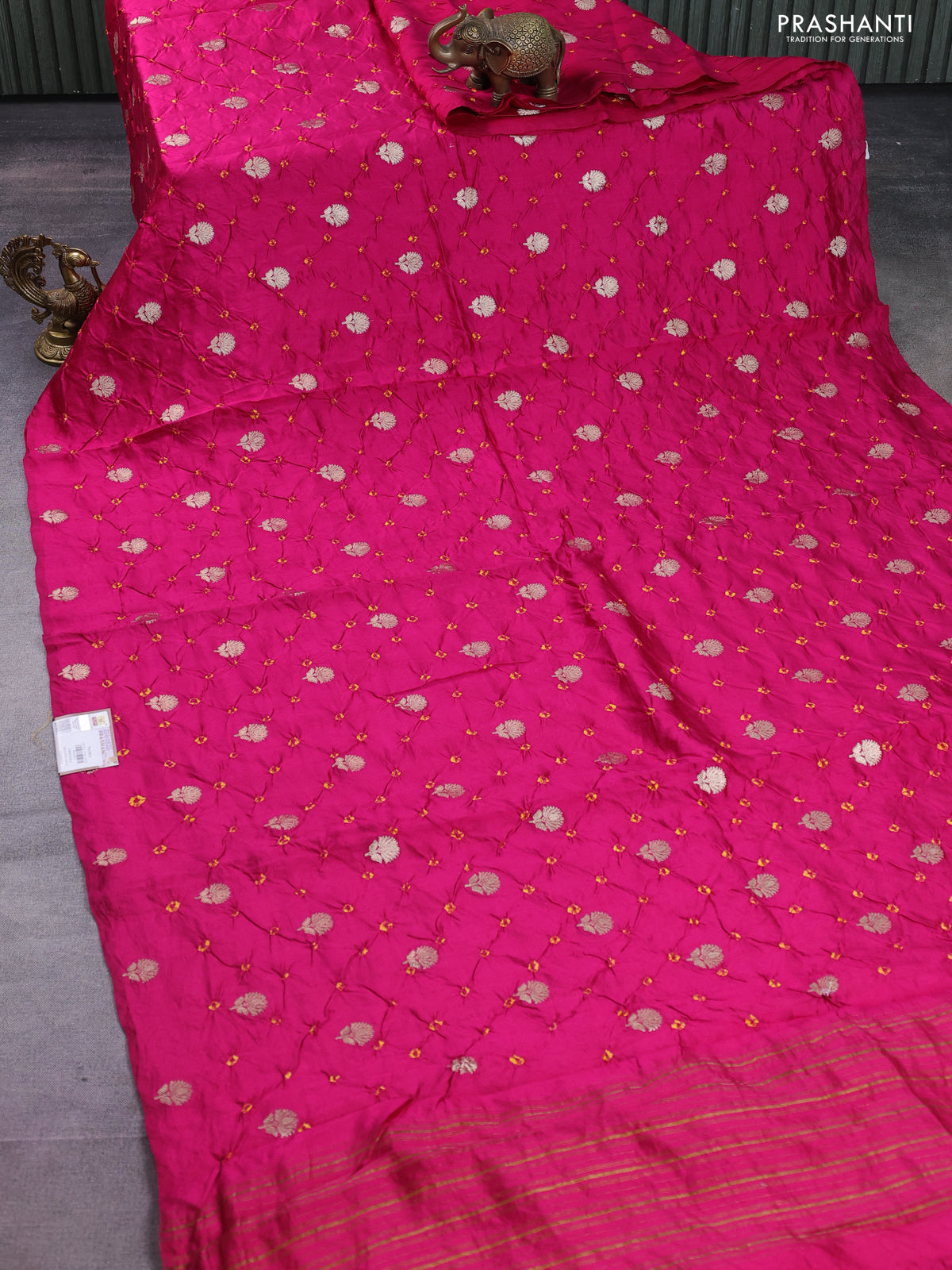 Chiniya silk saree pink and mustard yellow with allover zari buttas & bandhini prints in borderless style