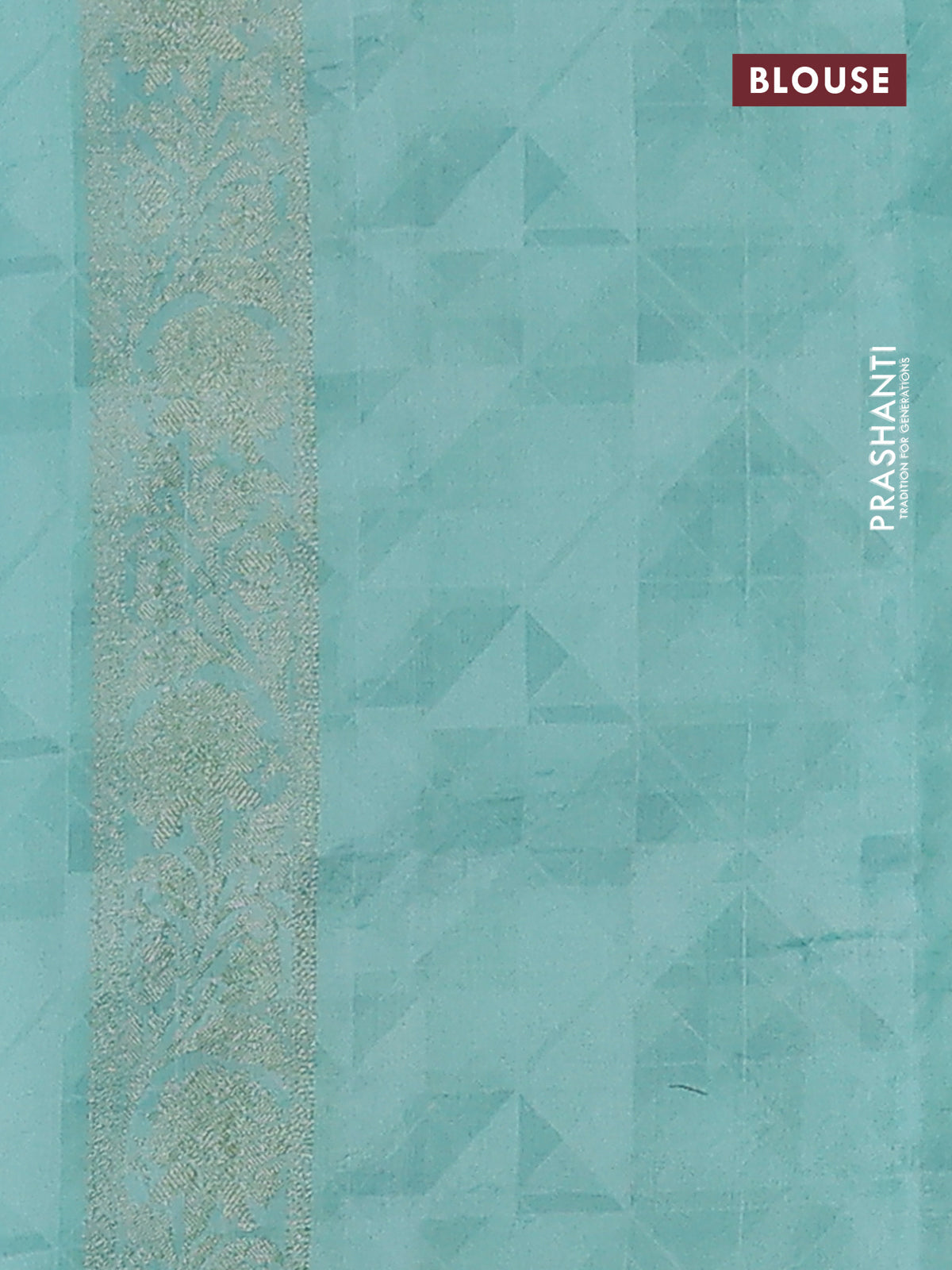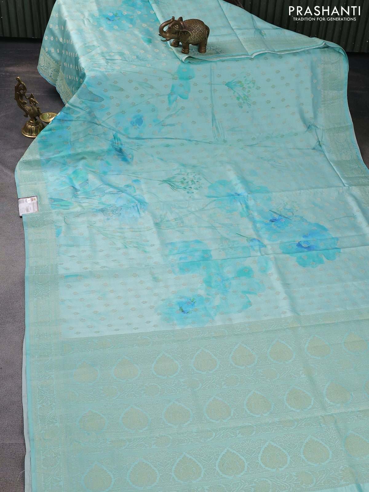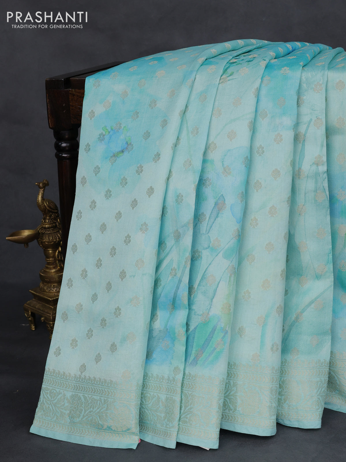 Chiniya silk saree teal blue with zari woven buttas & digital prints and zari woven border