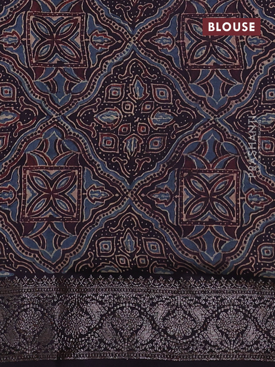 Material : Chiniya Silk SILK MARK CERTIFIED Blouse : Ajrakh printed blouse Length of saree : 6.2 mts (5.5 mts... Read more