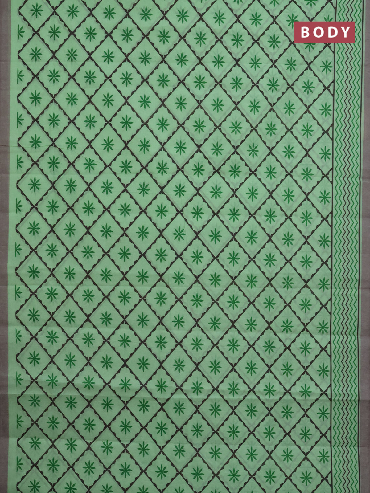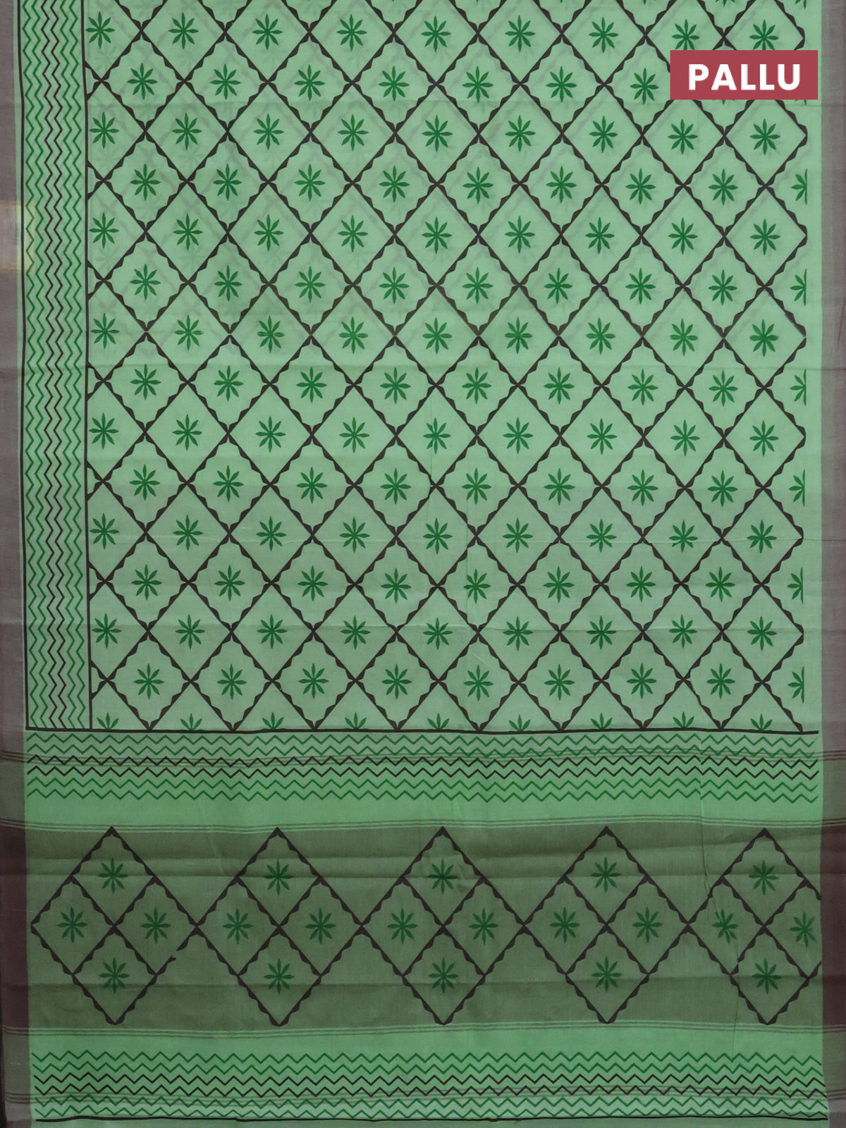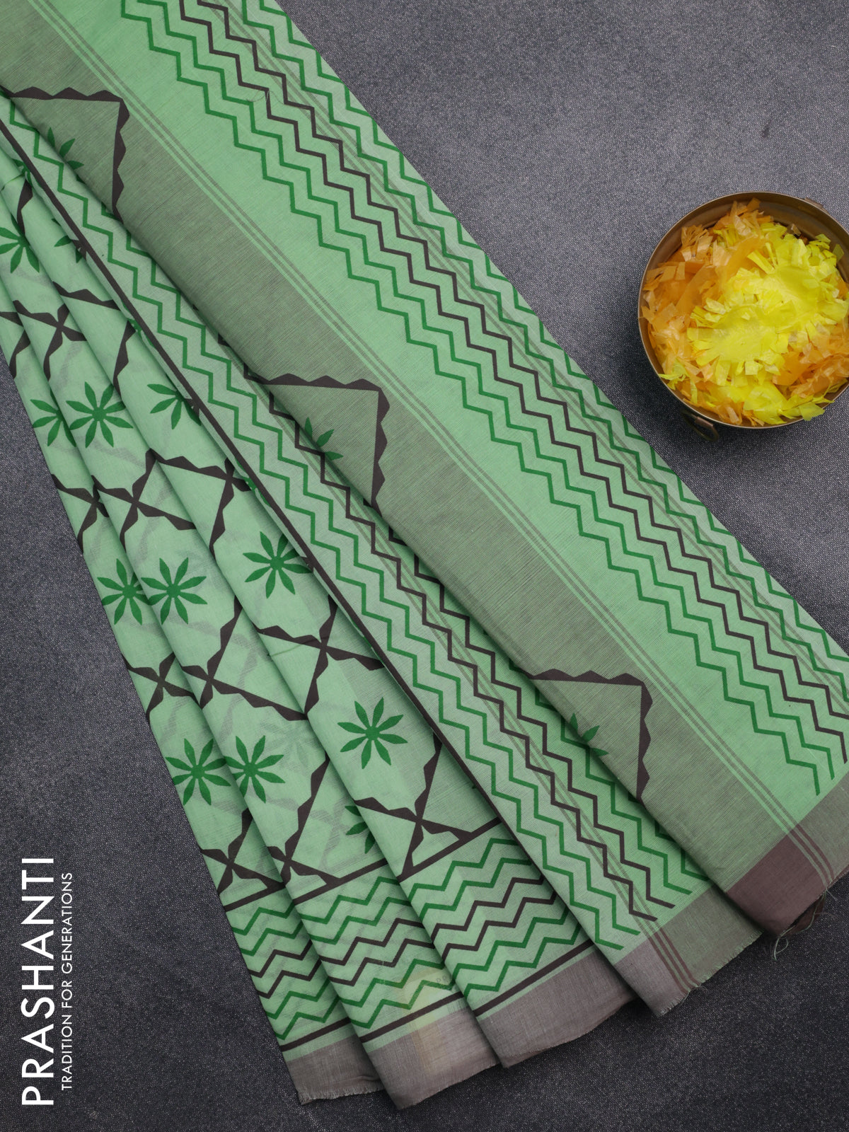 Chirala cotton saree light green and grey with allover prints and printed border