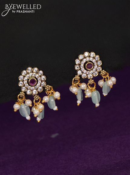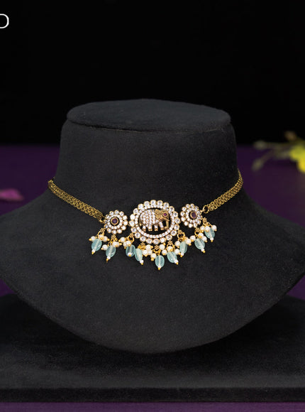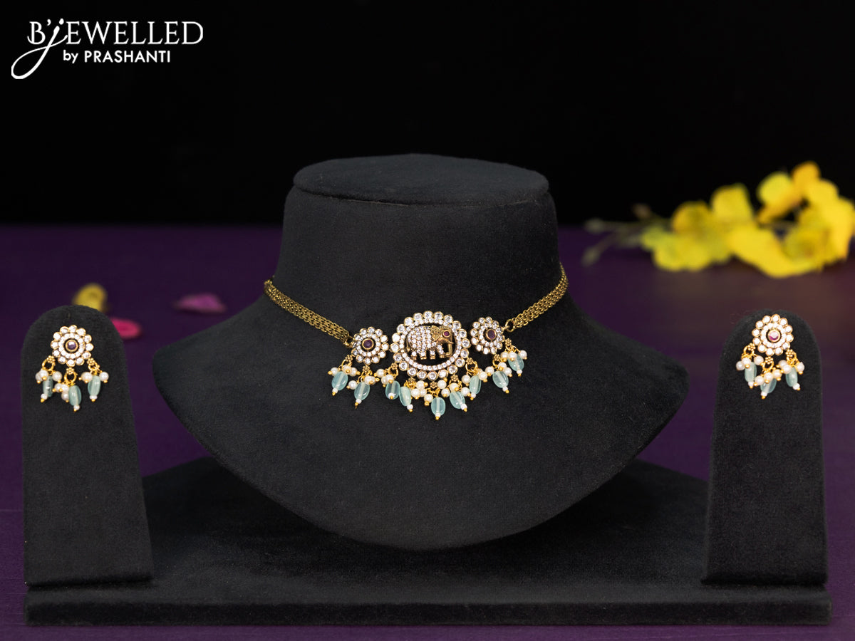 Choker elephant design with ruby & cz stones and mint green beads hangings in victorian finish