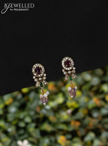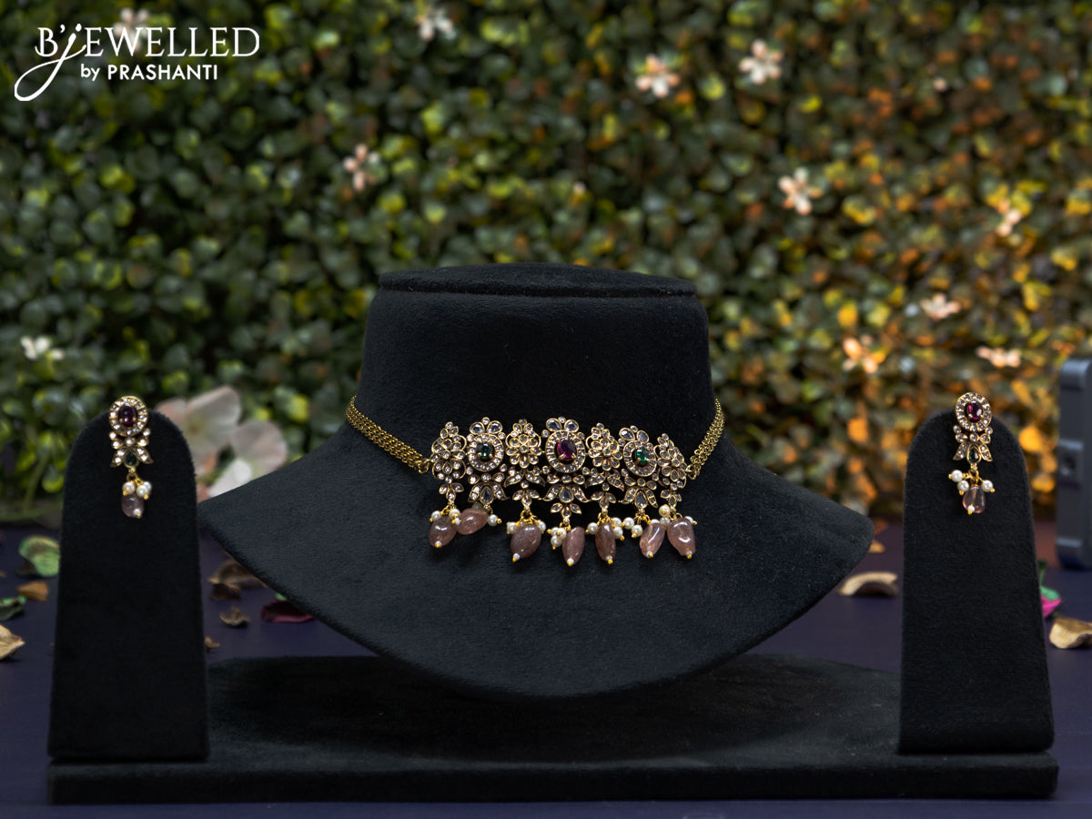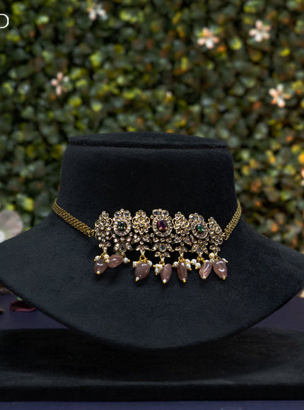 Choker with kemp & cz stones and beads hangings in victorian finish