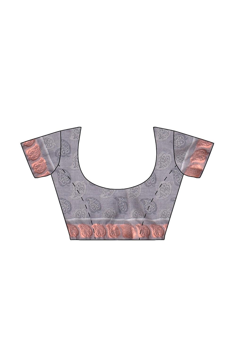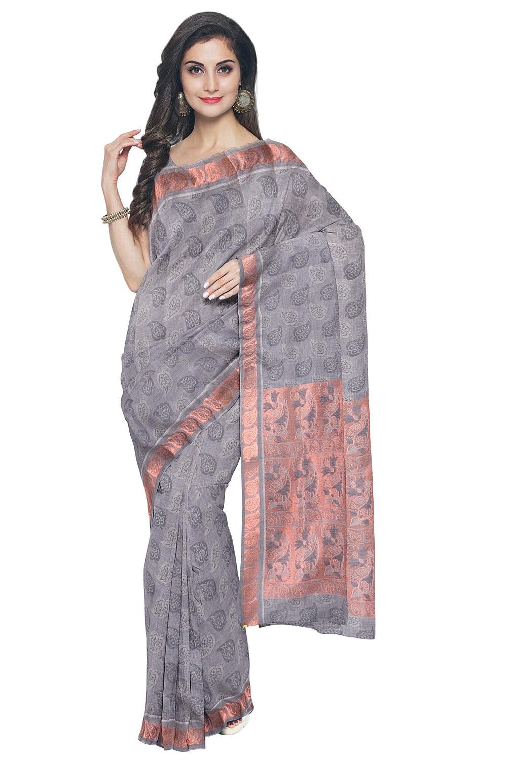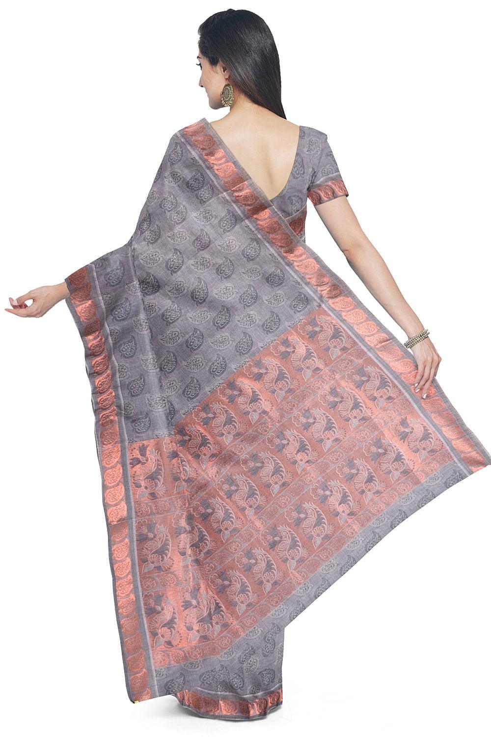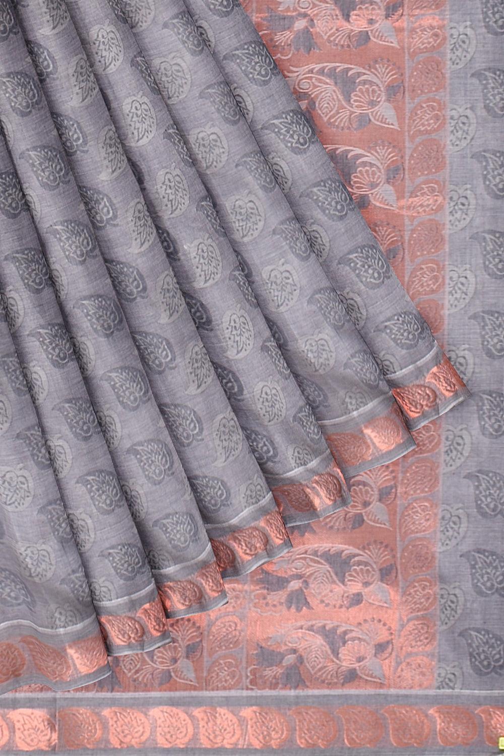 Coimbatore Cotton Copper Zari Saree - Grey