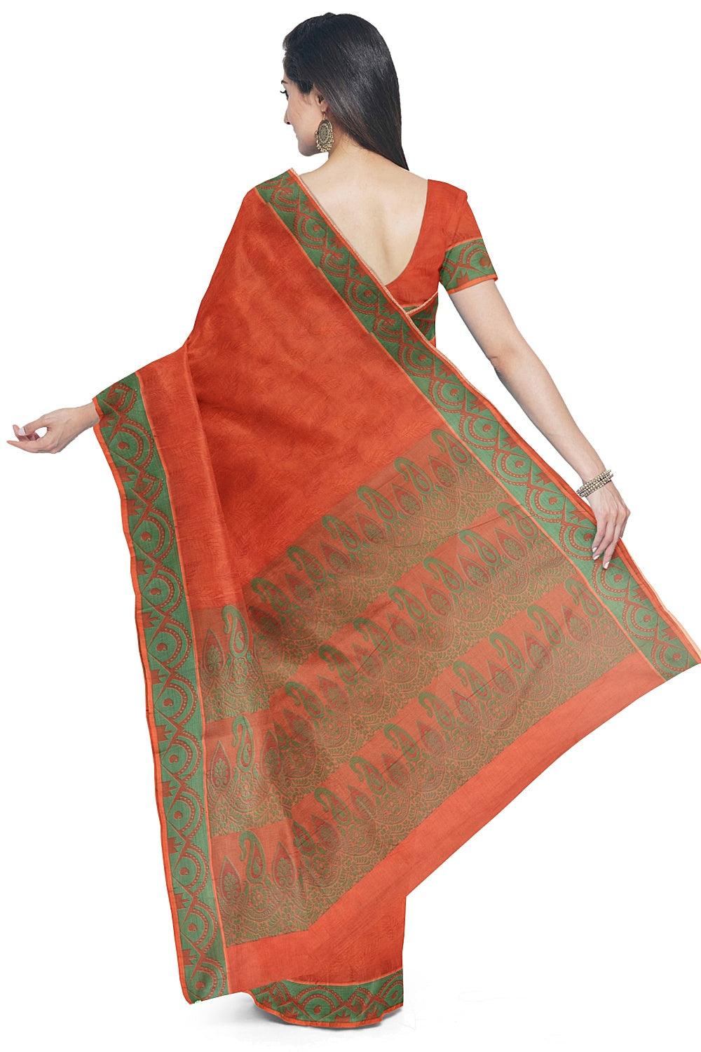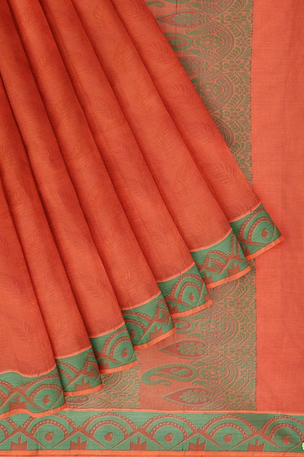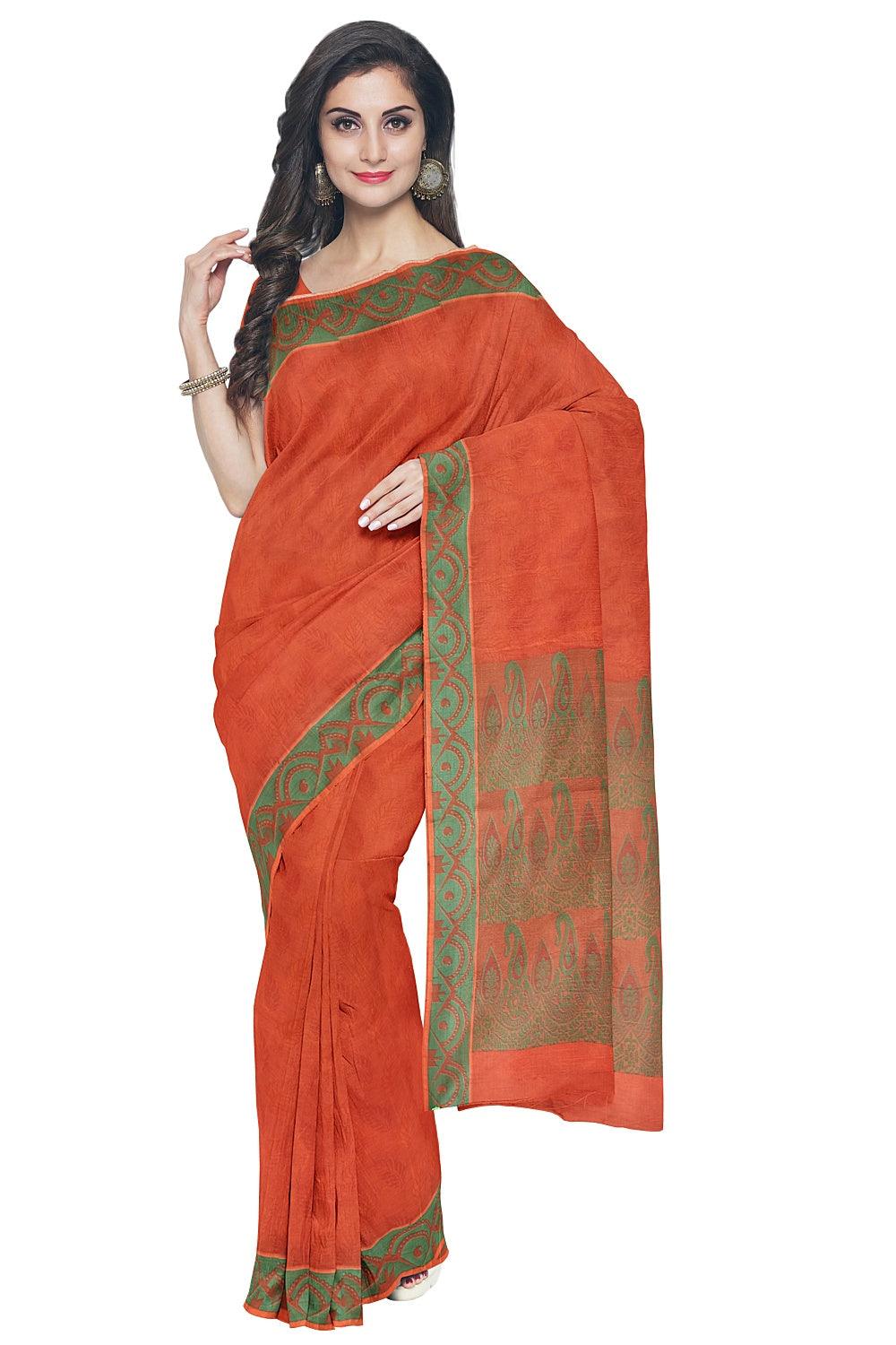 Coimbatore Cotton Emboss Saree - Orange