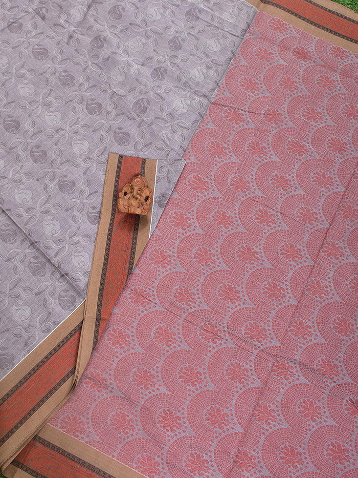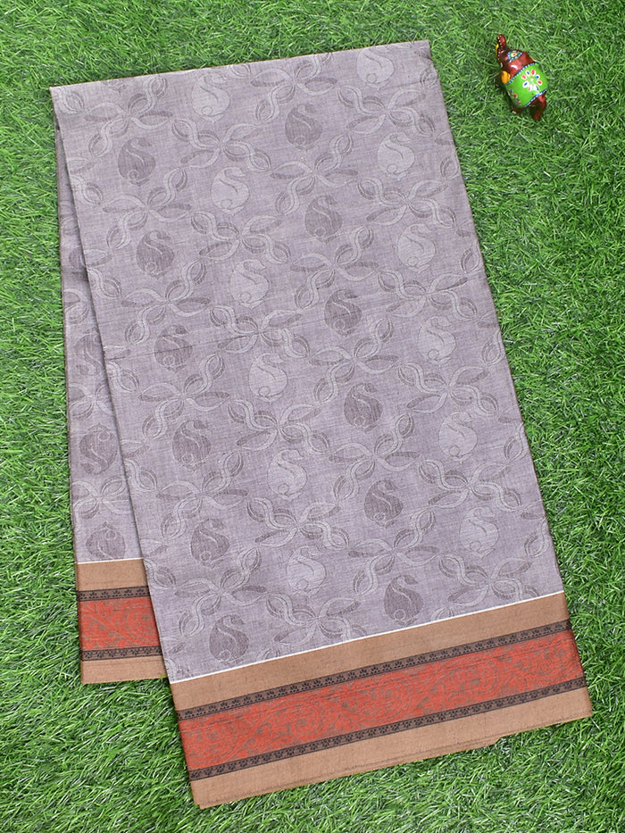 Coimbatore Cotton Grey Color Fancy Emboss Saree with Thread Woven Border