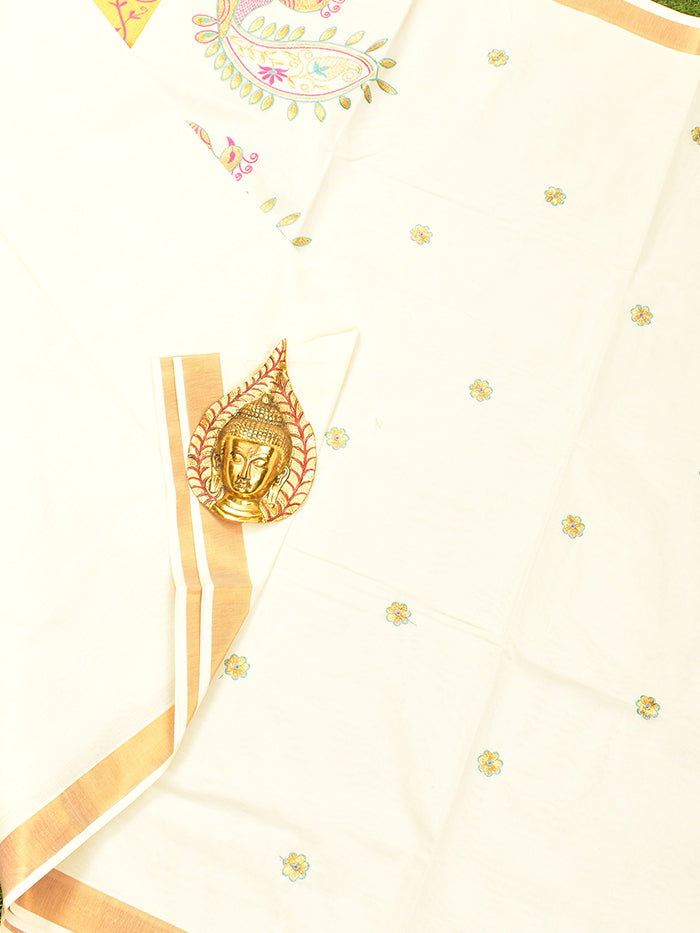 Coimbatore Cotton Off white Kerala Kasavu Saree