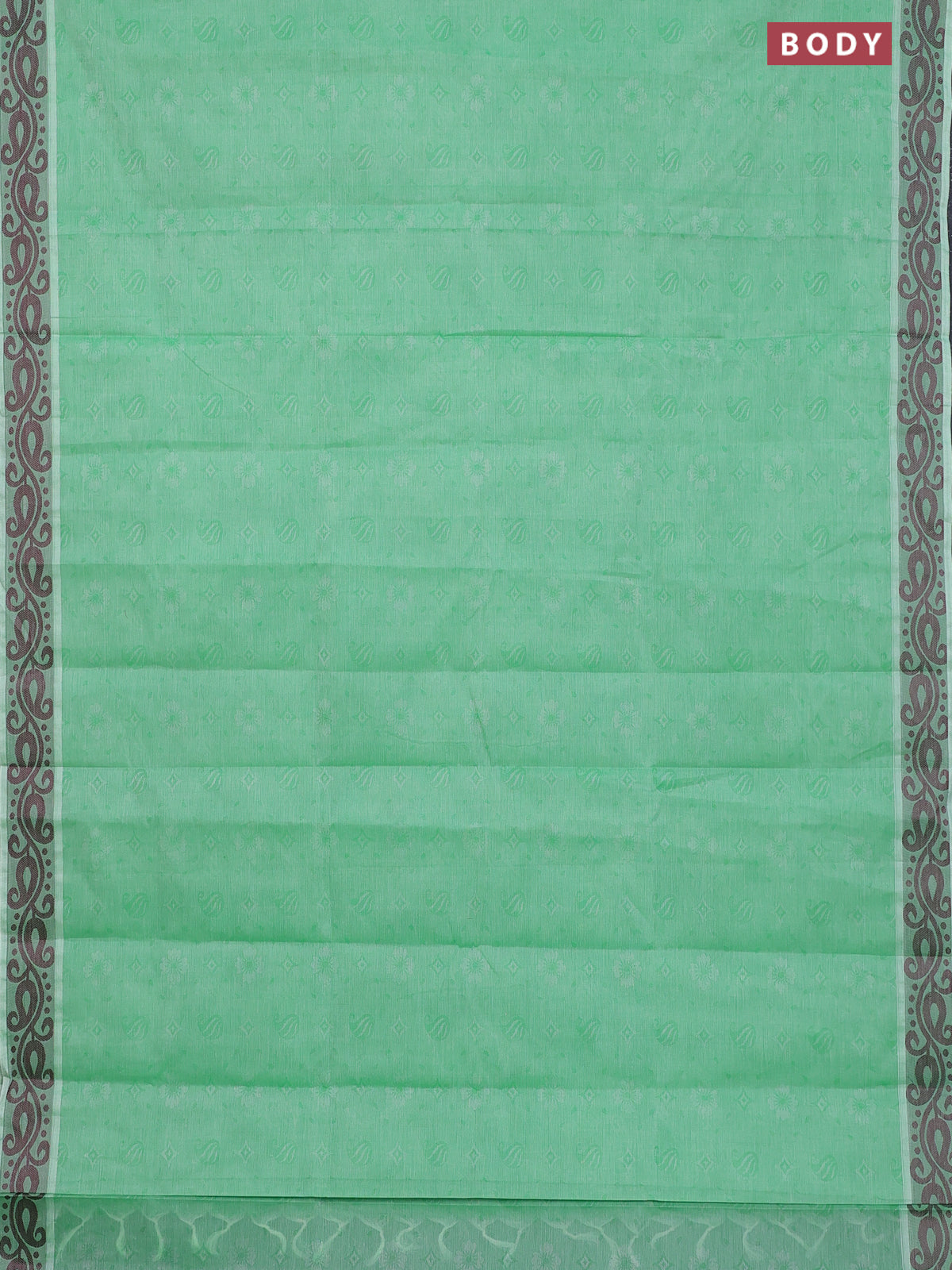 Coimbatore cotton saree green and deep maroon with allover self emboss and thread woven border