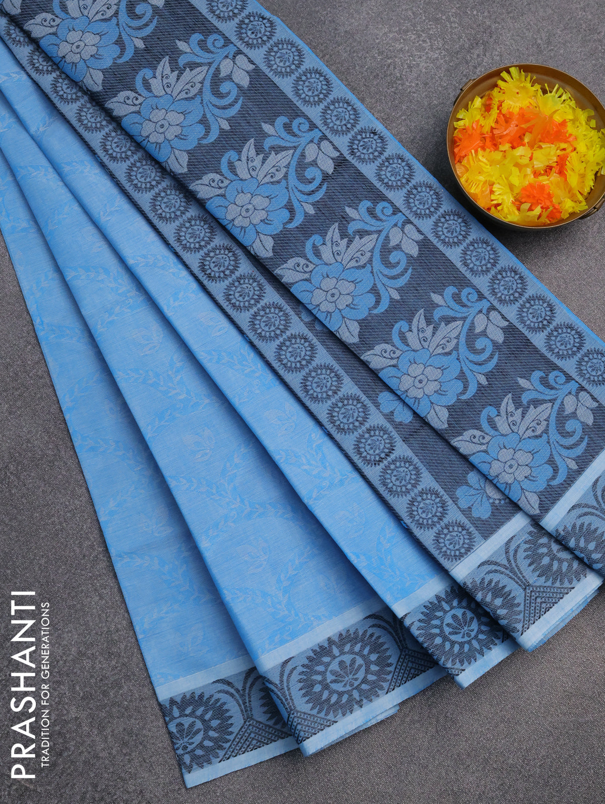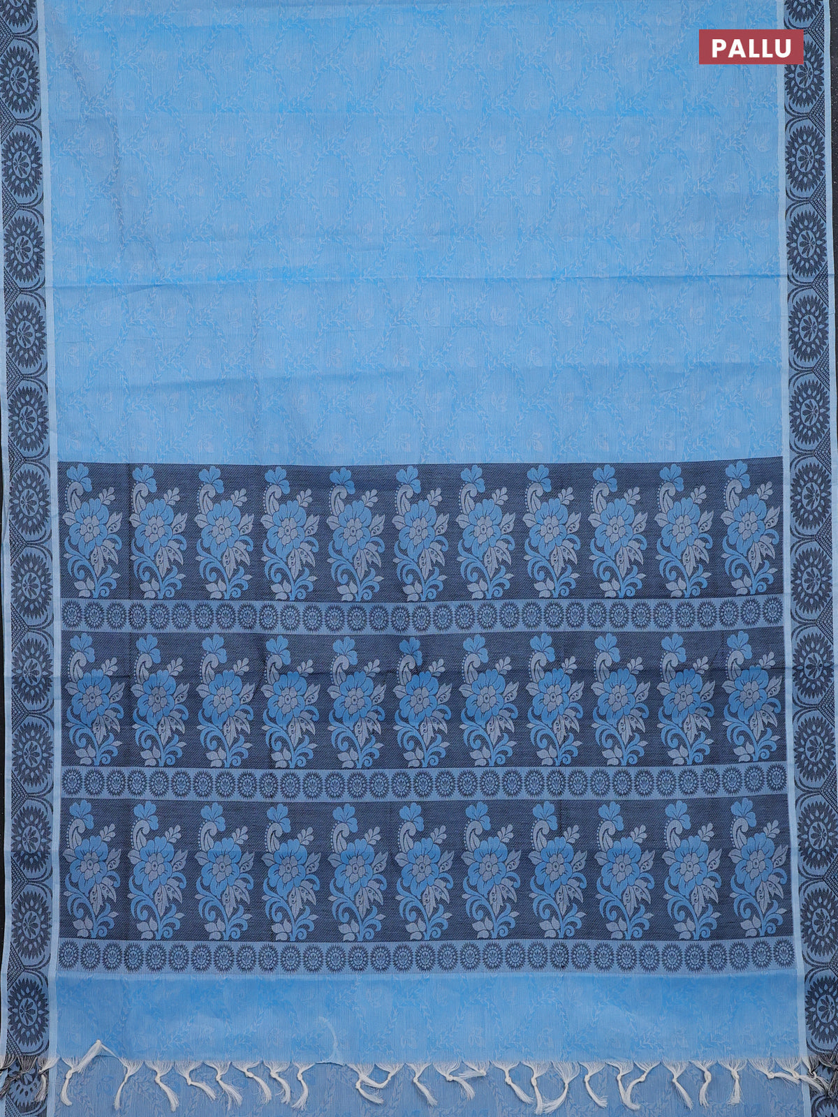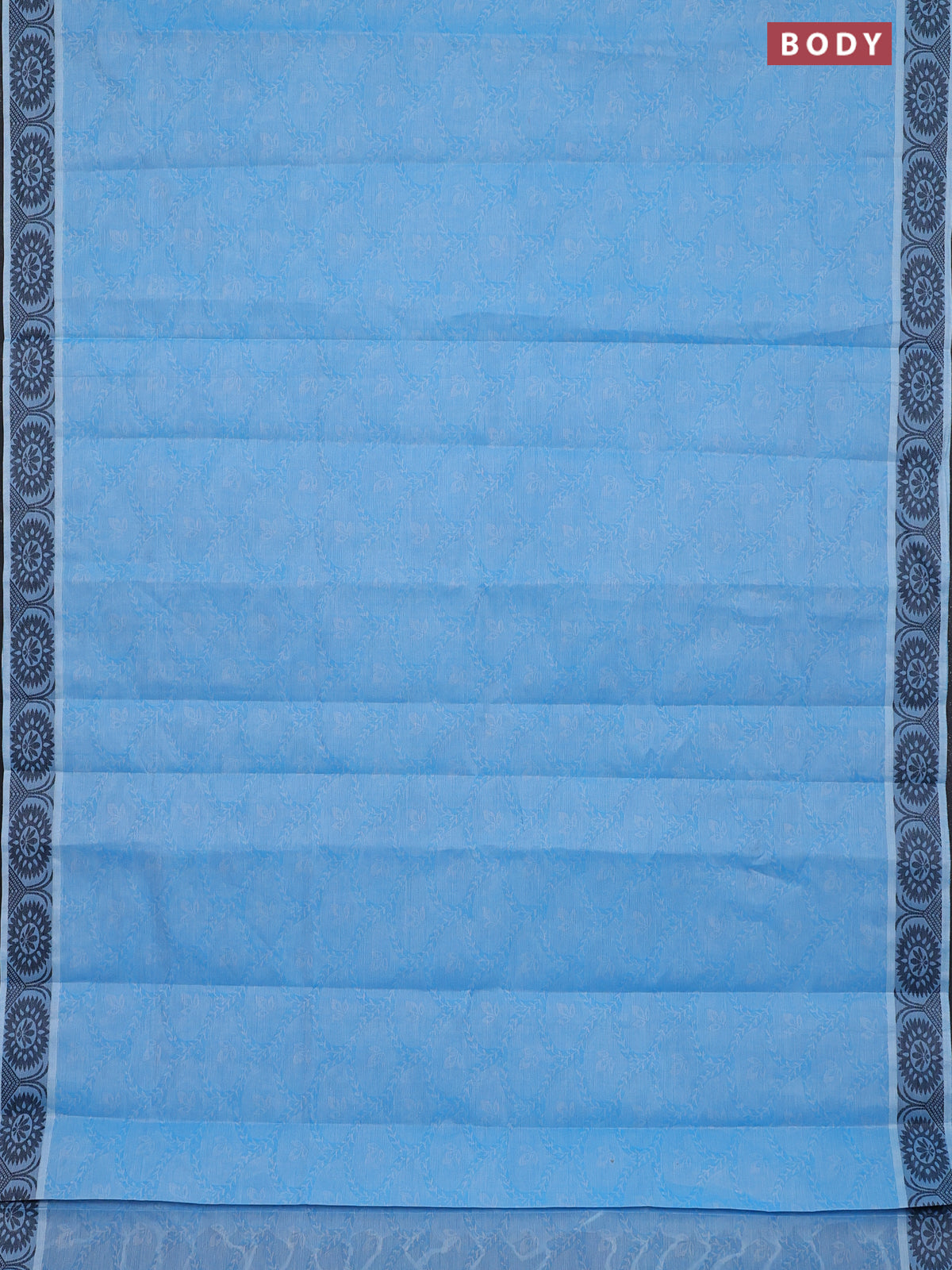 Coimbatore cotton saree light blue and black with allover self emboss and thread woven border