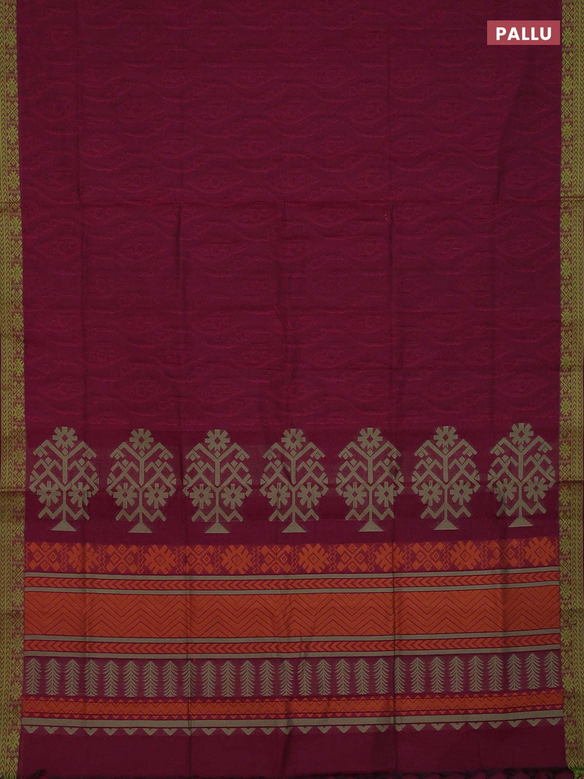 Coimbatore cotton saree magenta pink and light green with allover self emboss and thread woven border