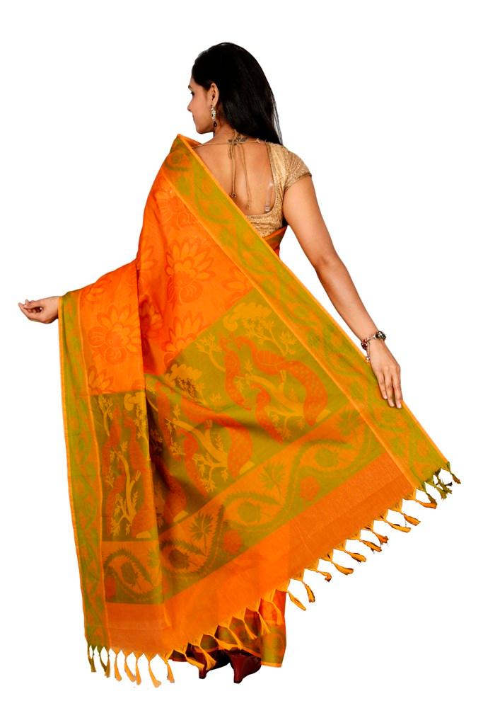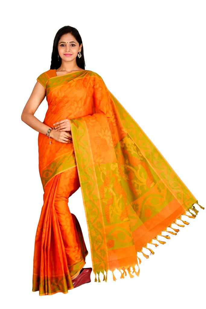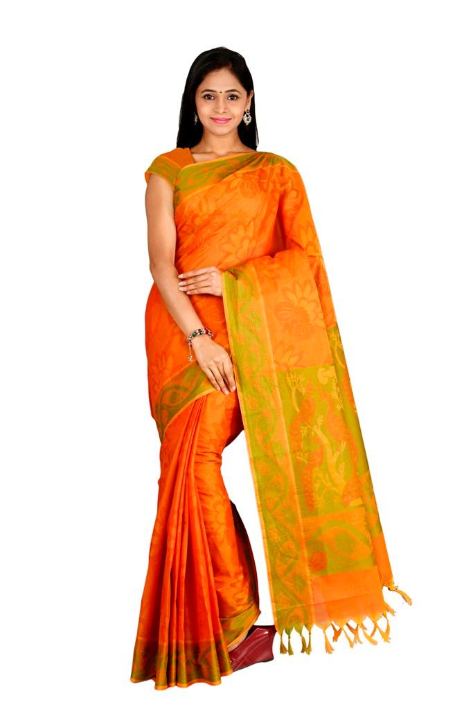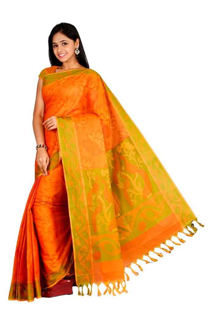 Coimbatore Cotton Saree - Orange