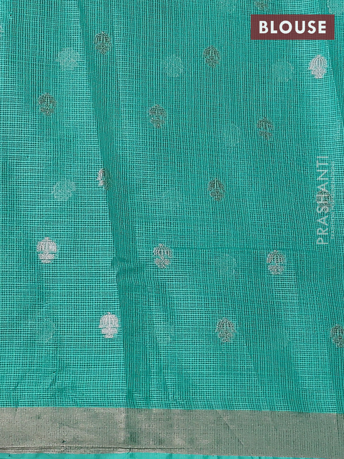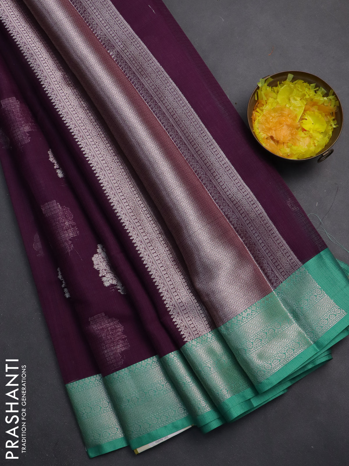 Cotton zari kota saree deep purple and teal green with zari woven buttas and silver zari woven border